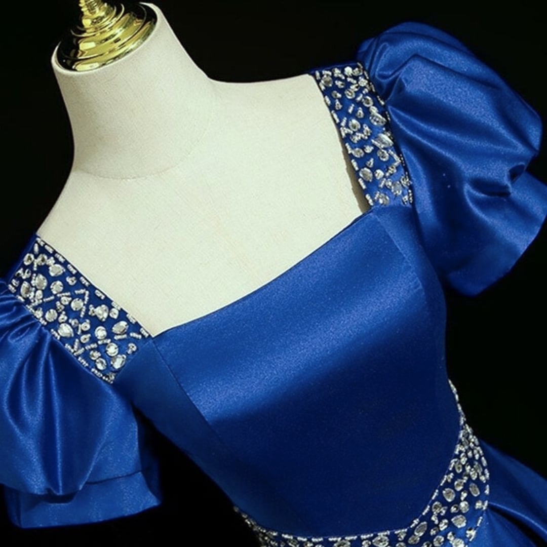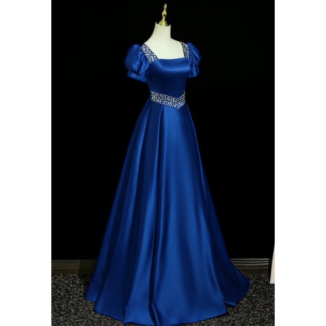 クラシカルなスクエアネックにパフスリーブデザインがエレガントなロングドレス。
