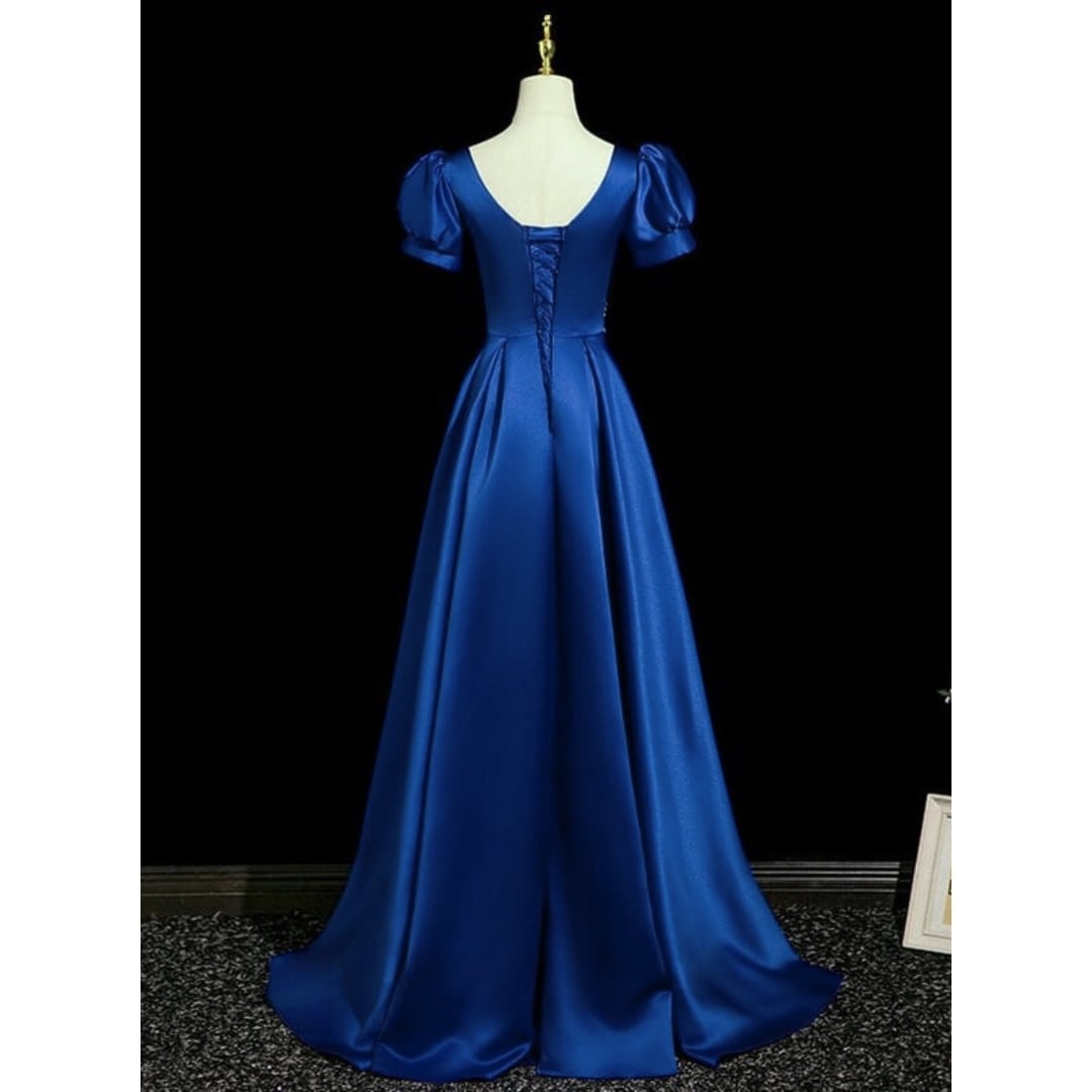 艶やかなサテン調の生地が上品に魅せ、Aラインシルエットが美しいボディラインを演出します。