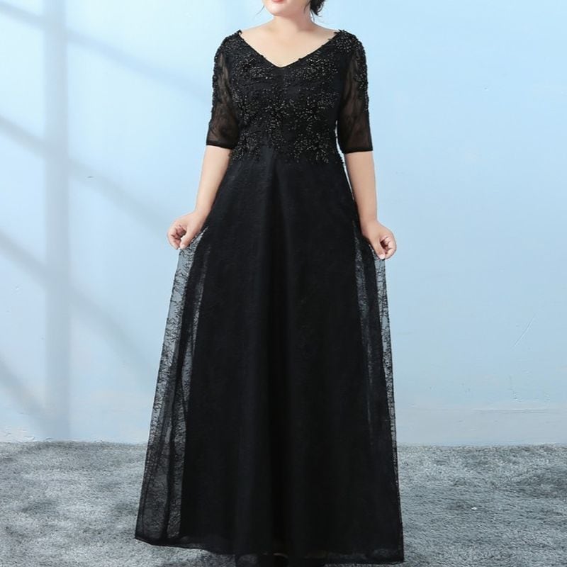 【3XL〜7XL】ビーズ装飾Vネックドレス D1576