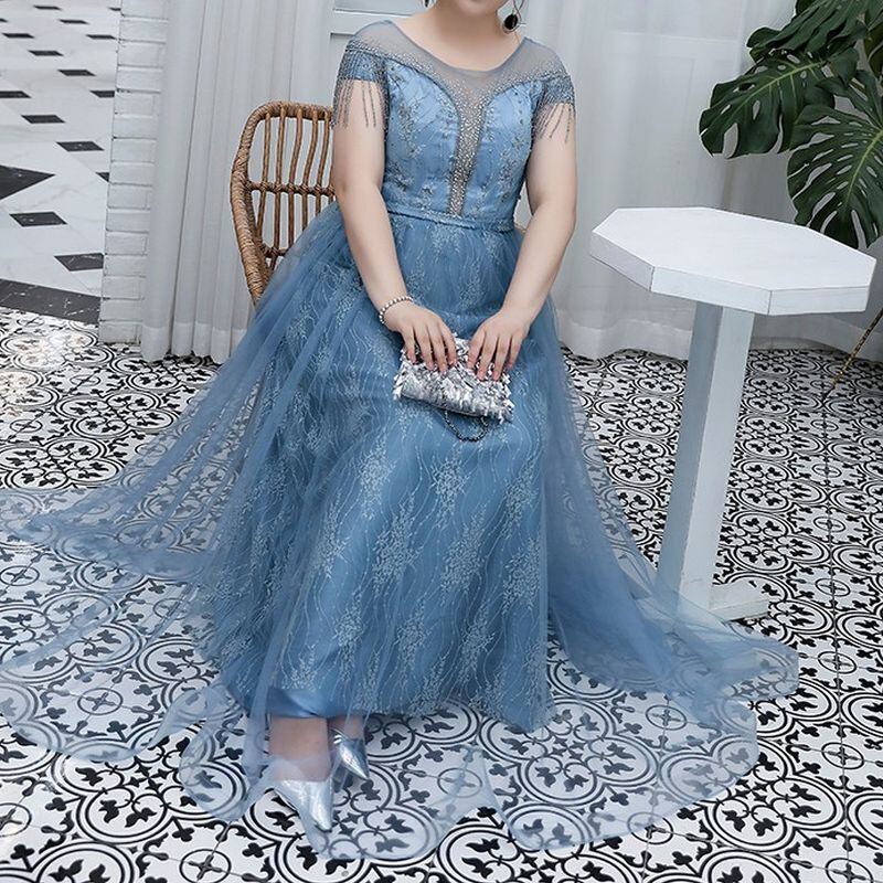 【3XL〜7XL】フリンジスリーブチュールドレス D1581