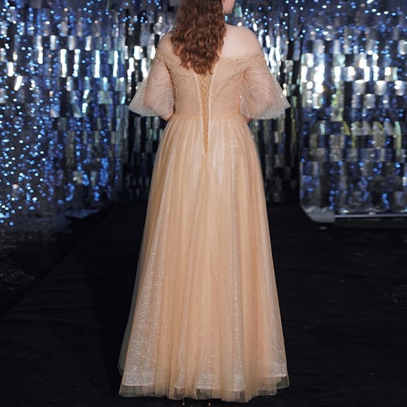 【3XL〜7XL】オフショルダーチュールドレス D1595
