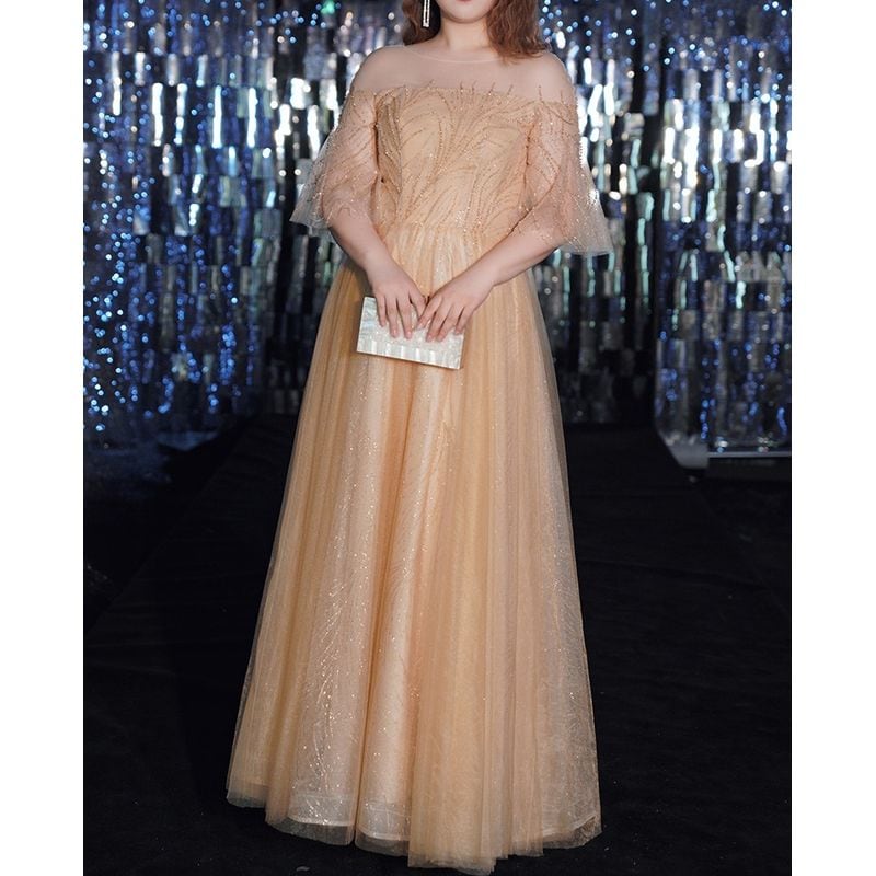 チュール素材が織りなす、繊細で美しいロングドレス。