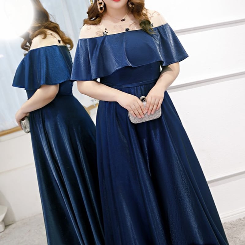 【3XL〜7XL】フリルオフショルダードレス D1600