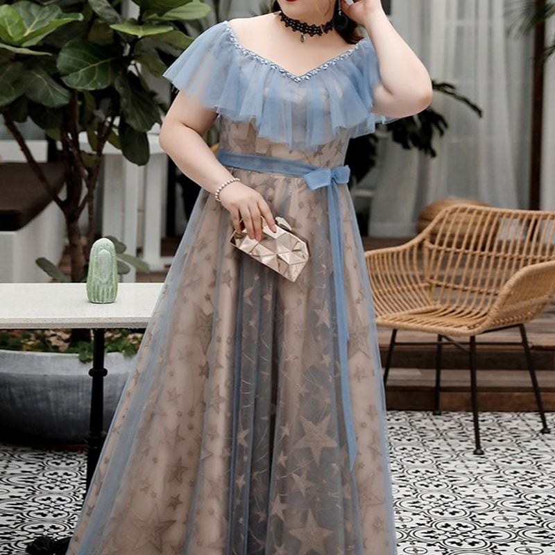 【3XL〜7XL】星柄フリルスリーブチュールドレス D1607