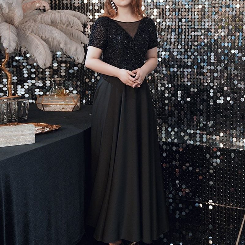 【3XL〜7XL】スパンコール装飾シアーVネックドレス D1612