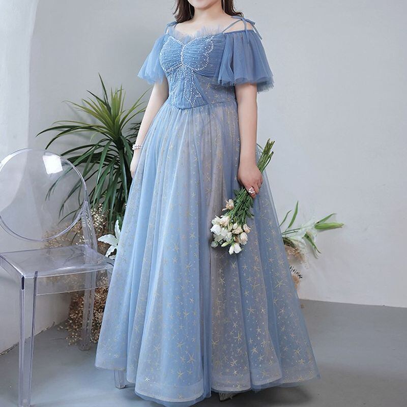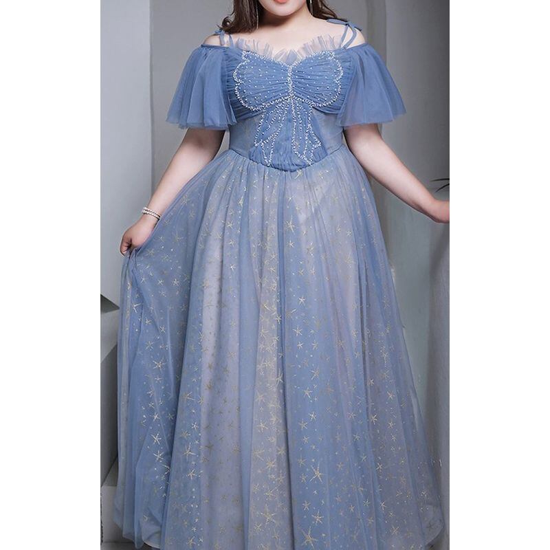【3XL〜7XL】星柄リボンデザインチュールドレス D1616