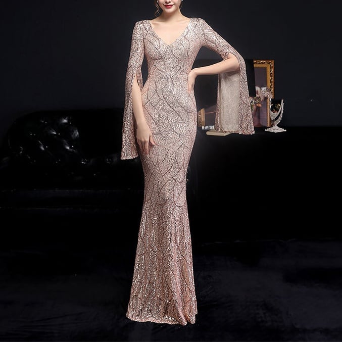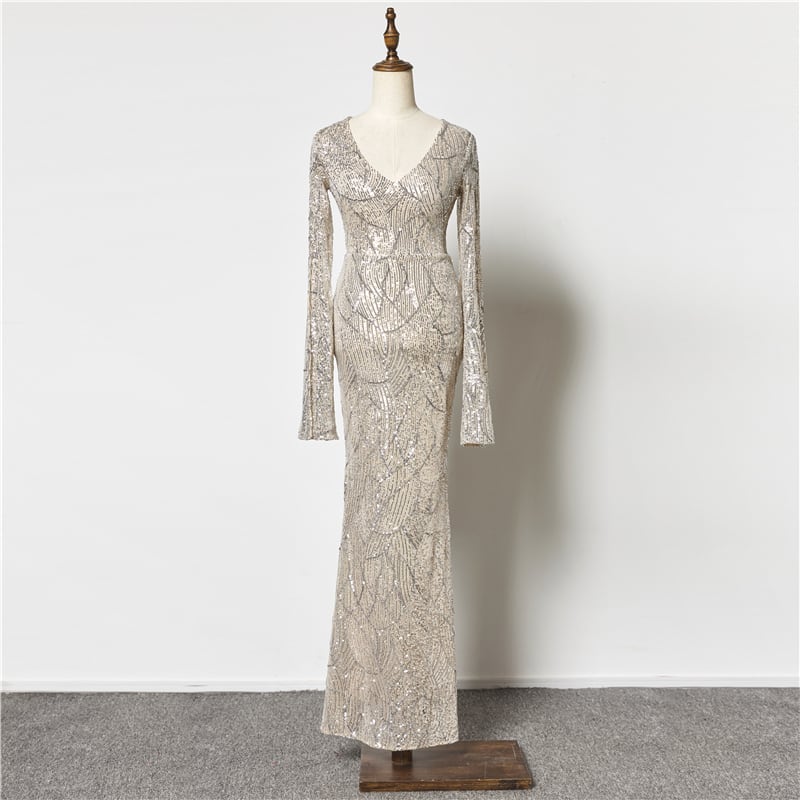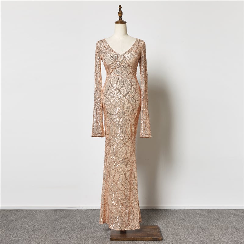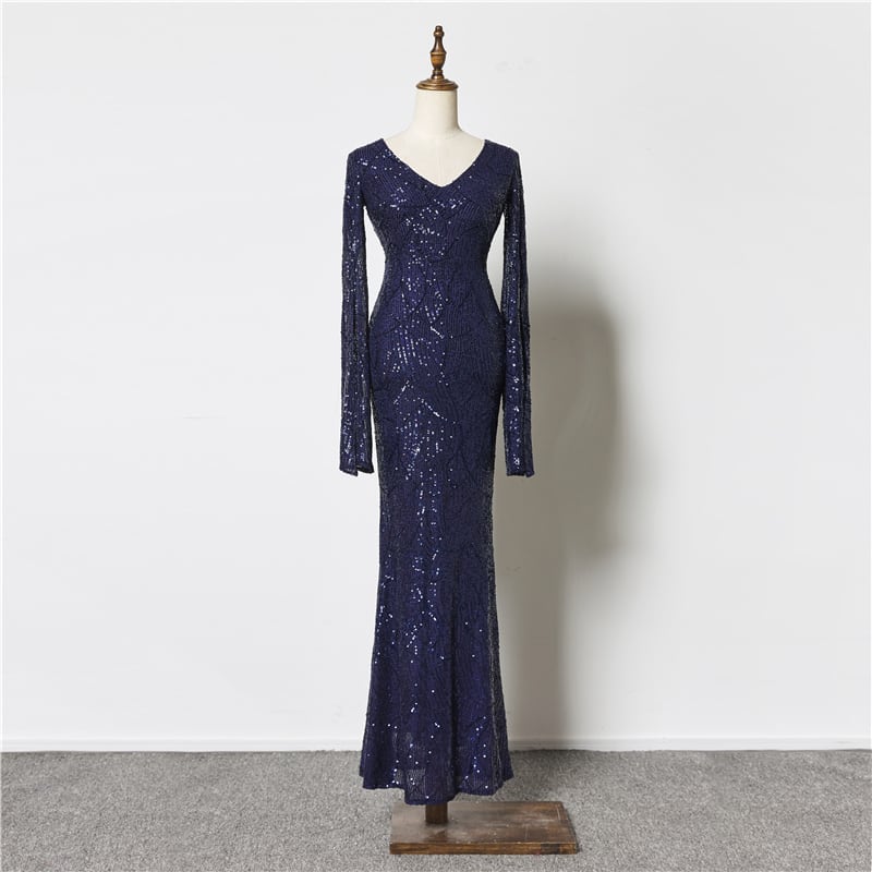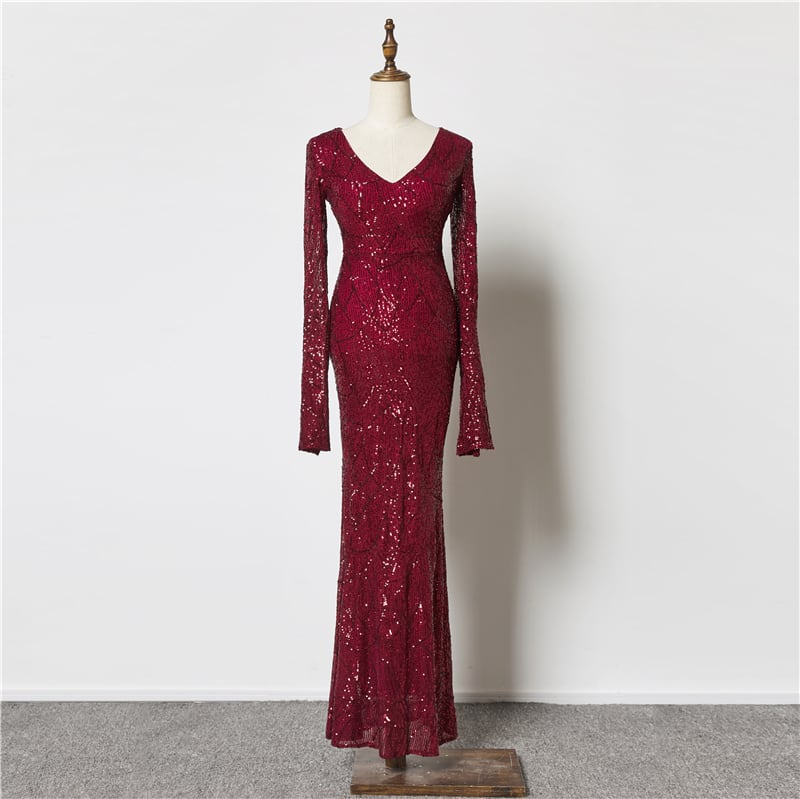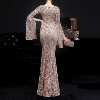 スパンコールロングスリーブマーメイドドレス 6color D1474
