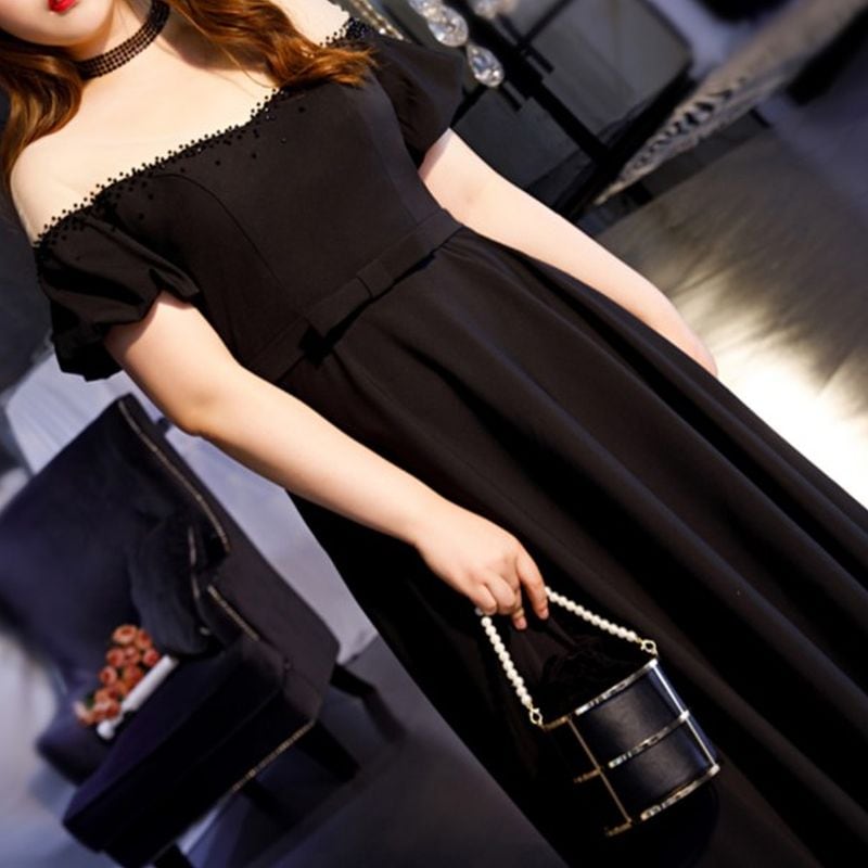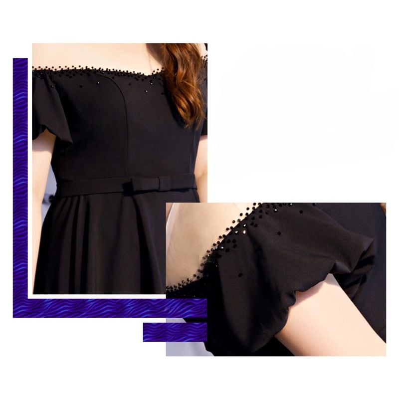 【3XL〜7XL】オフショルダーパフスリーブドレス D1619