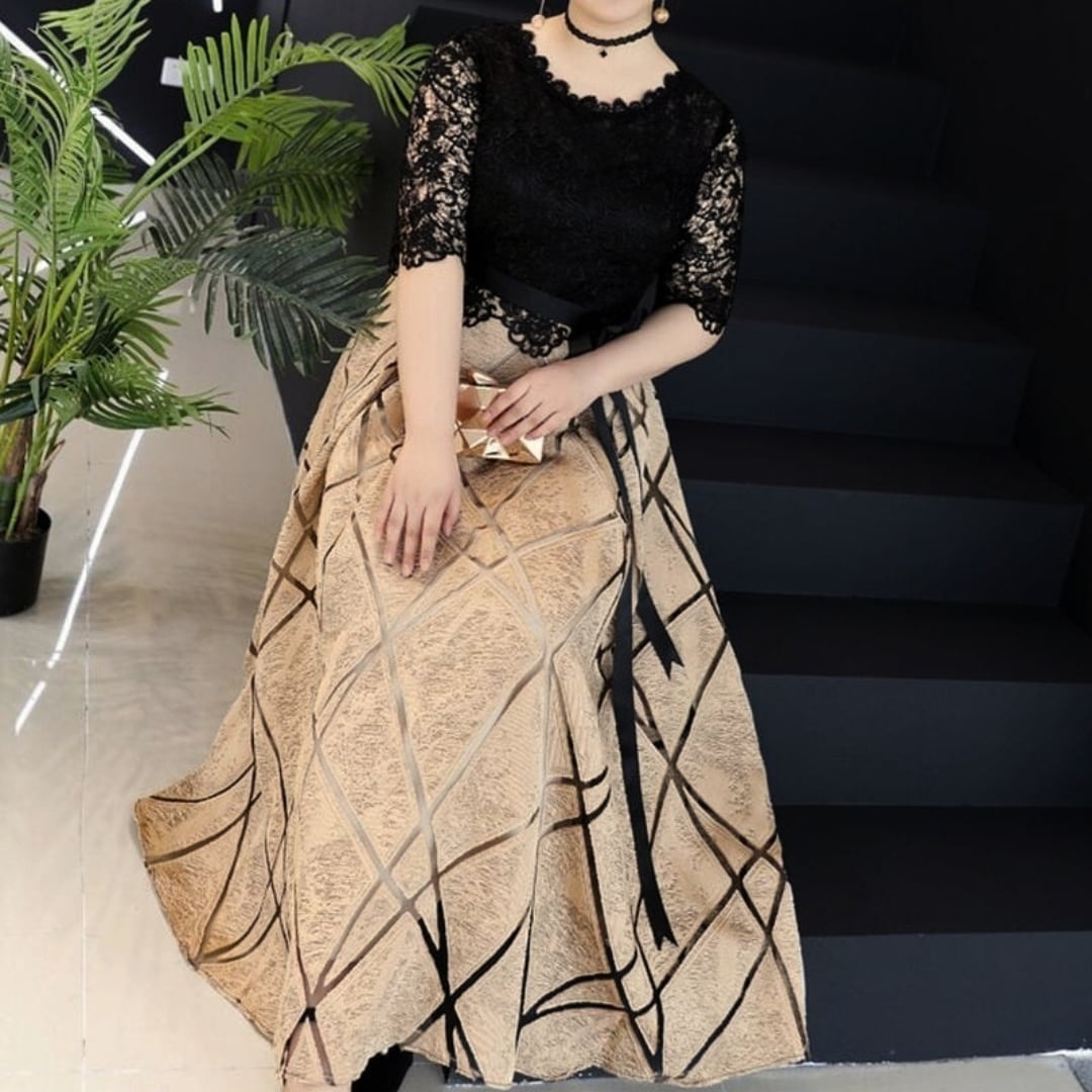 特別な日の装いにぴったりな個性が光る切替デザインが魅力的なロングドレスです。