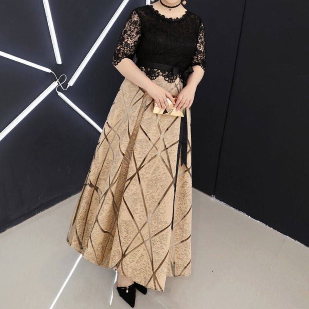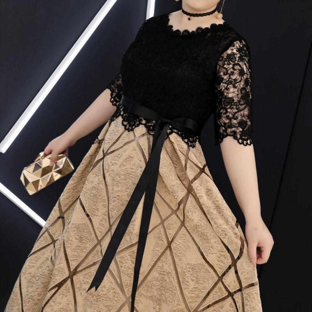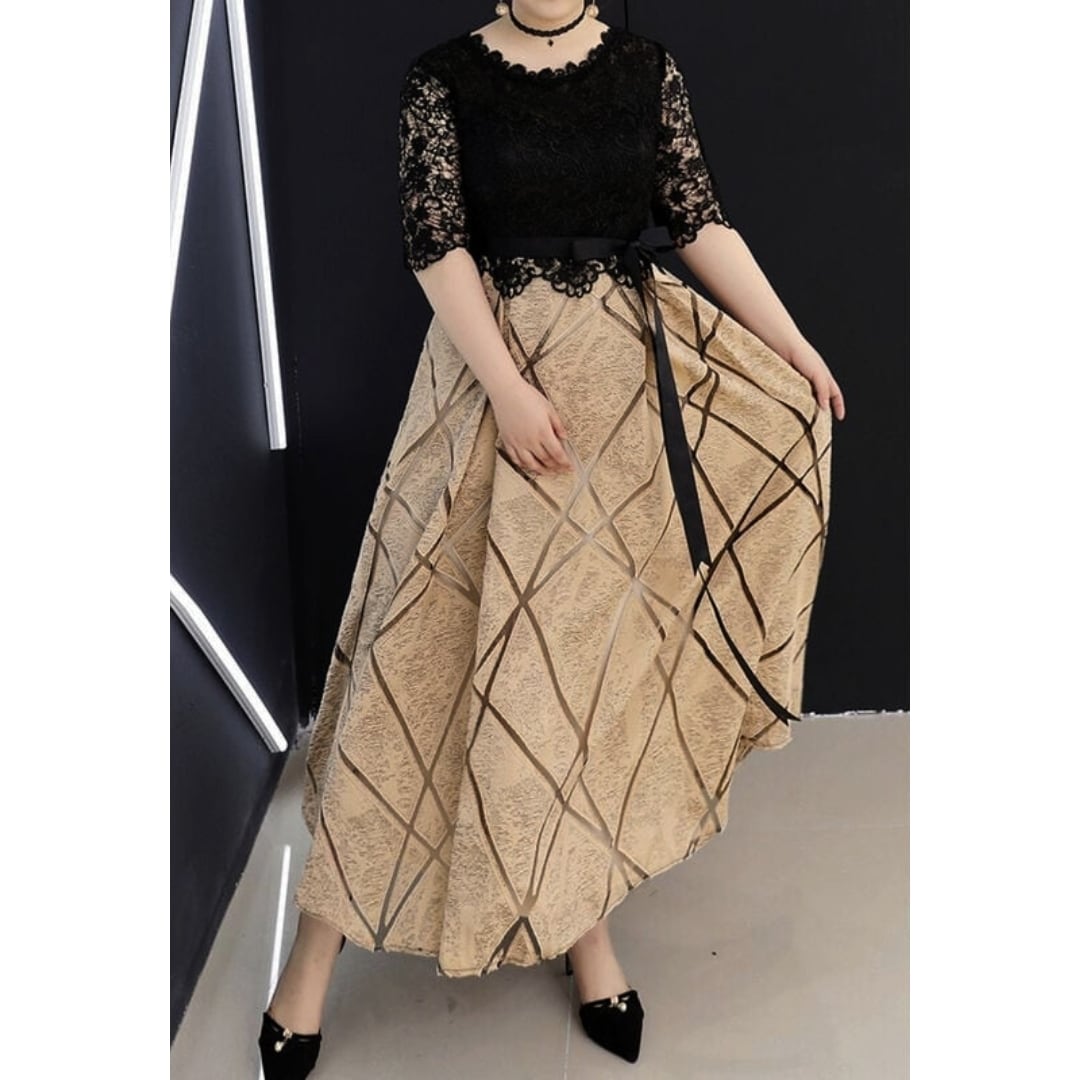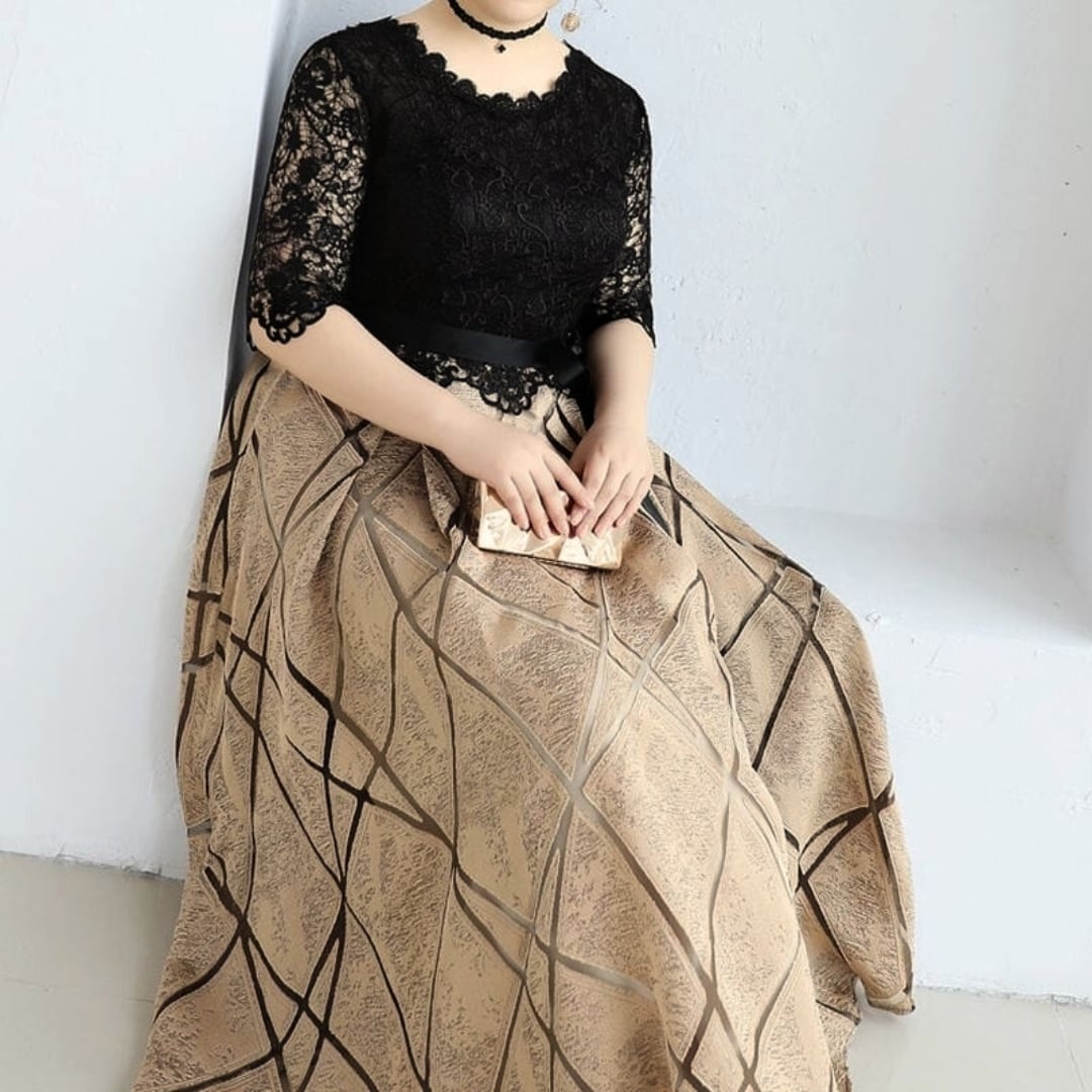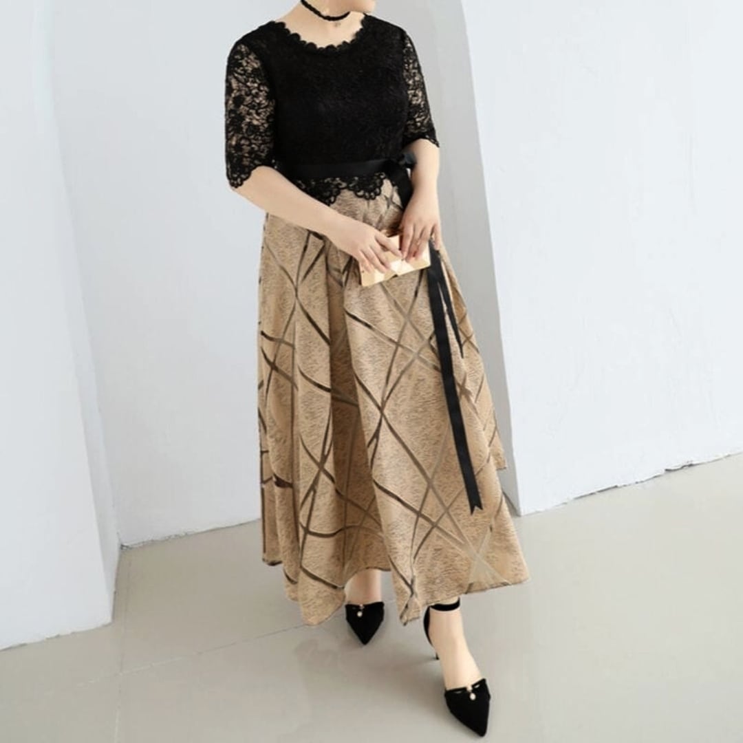 【3XL〜7XL】レース切替モダンロングドレス D1624