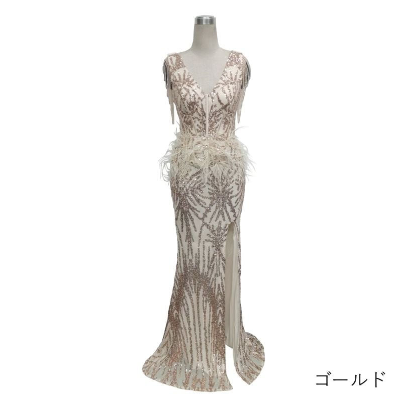 フェザー装飾スパンコールマーメイドドレス 7color D1676