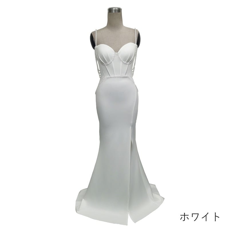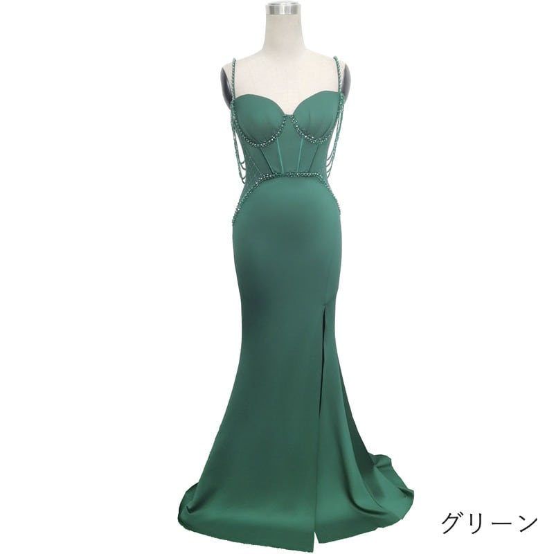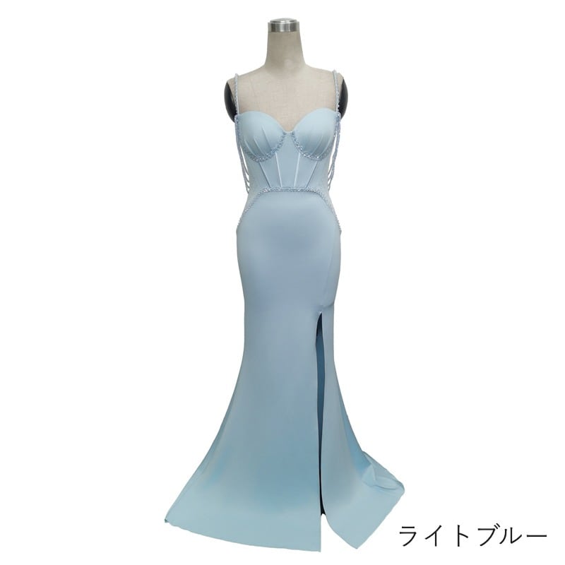 ビーズ装飾スリットマーメイドドレス 9color D1678