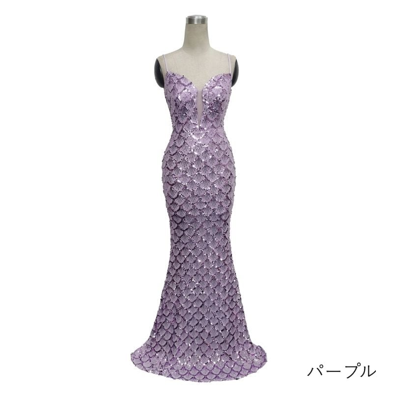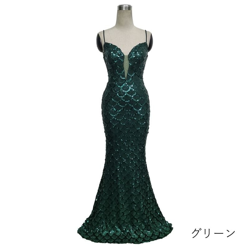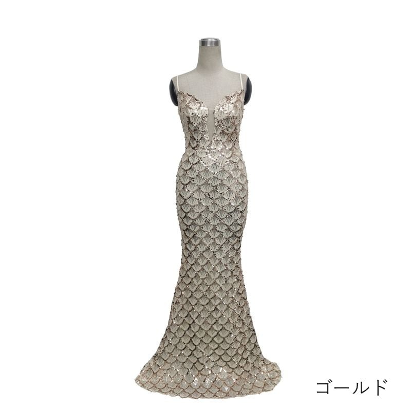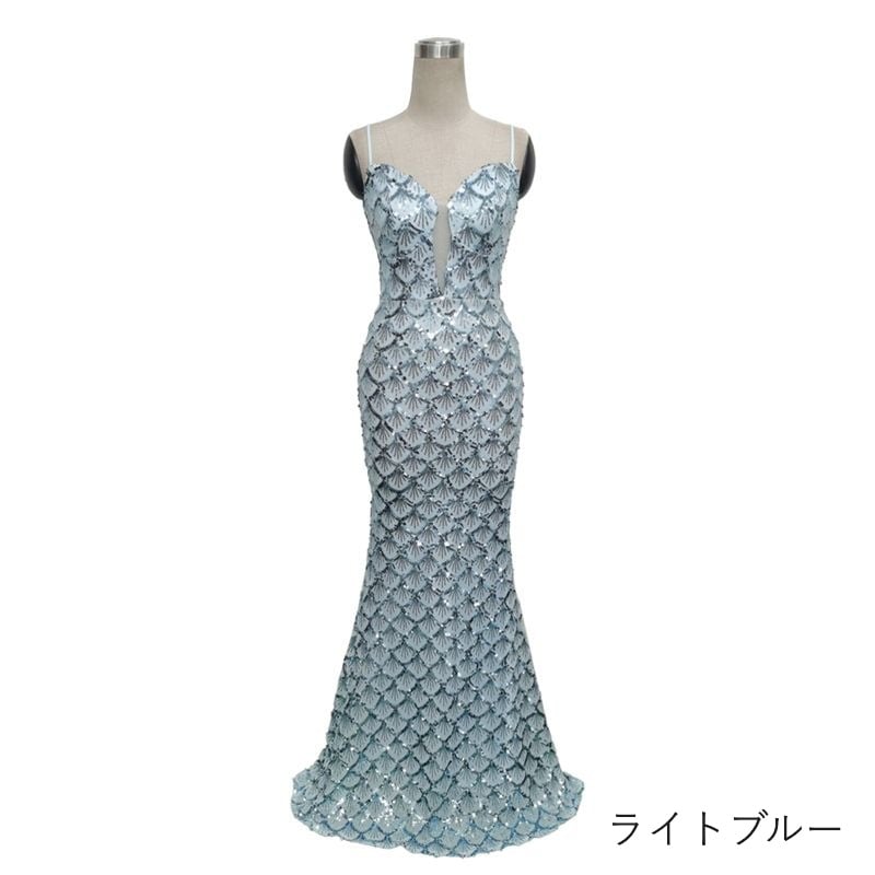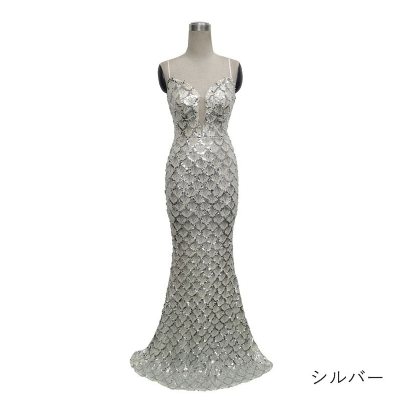 まさにマーメイドのようなスパンコール模様がエレガントなロングドレスです。