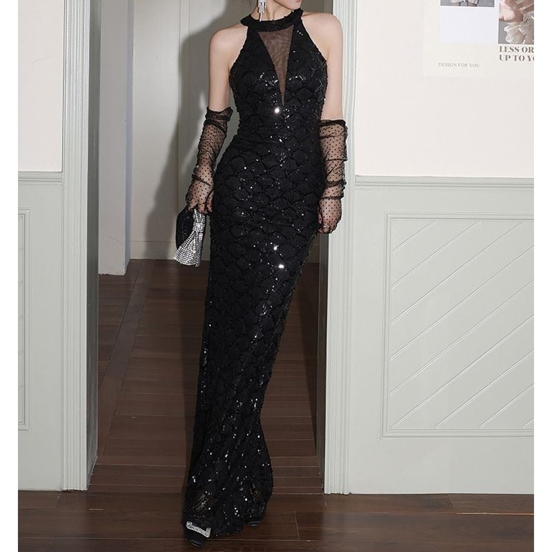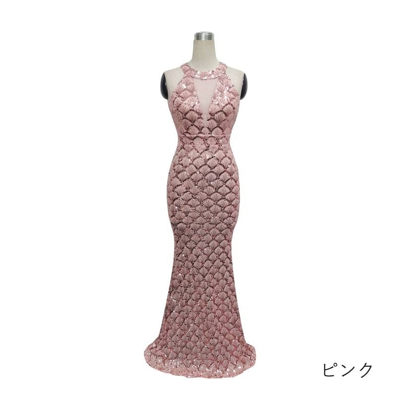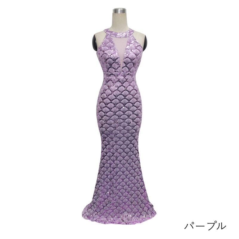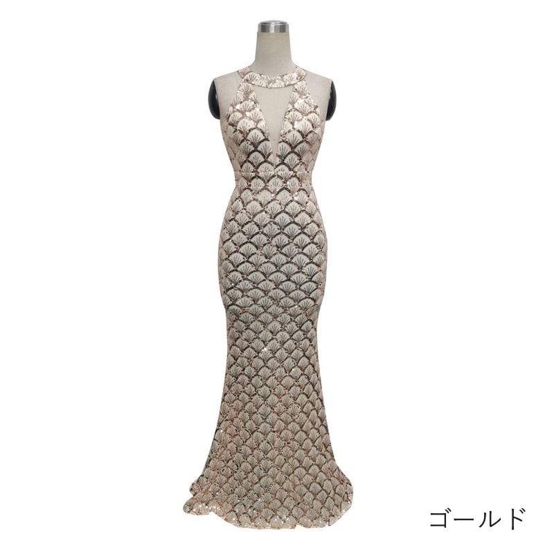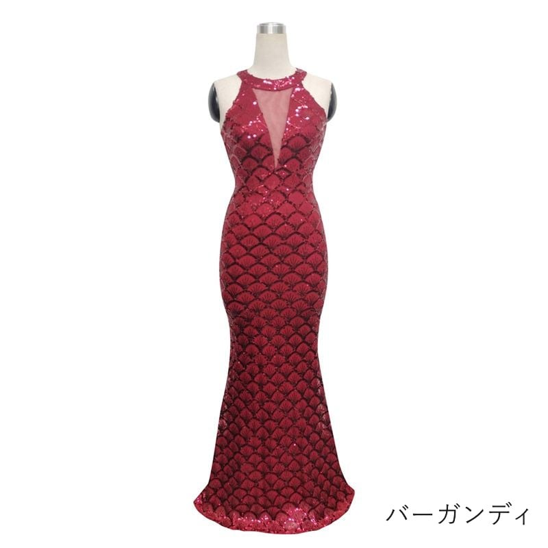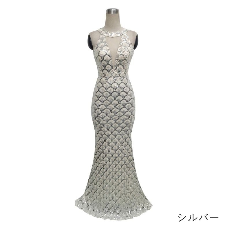 人魚のようなスパンコール模様が贅沢に施され、特別な夜にふさわしい輝きを放ちます。