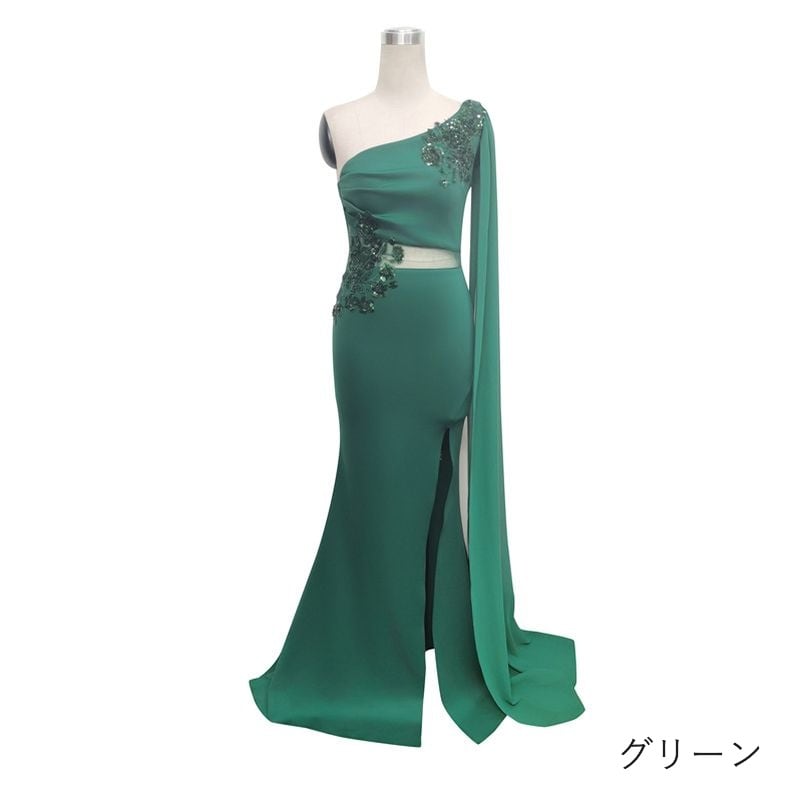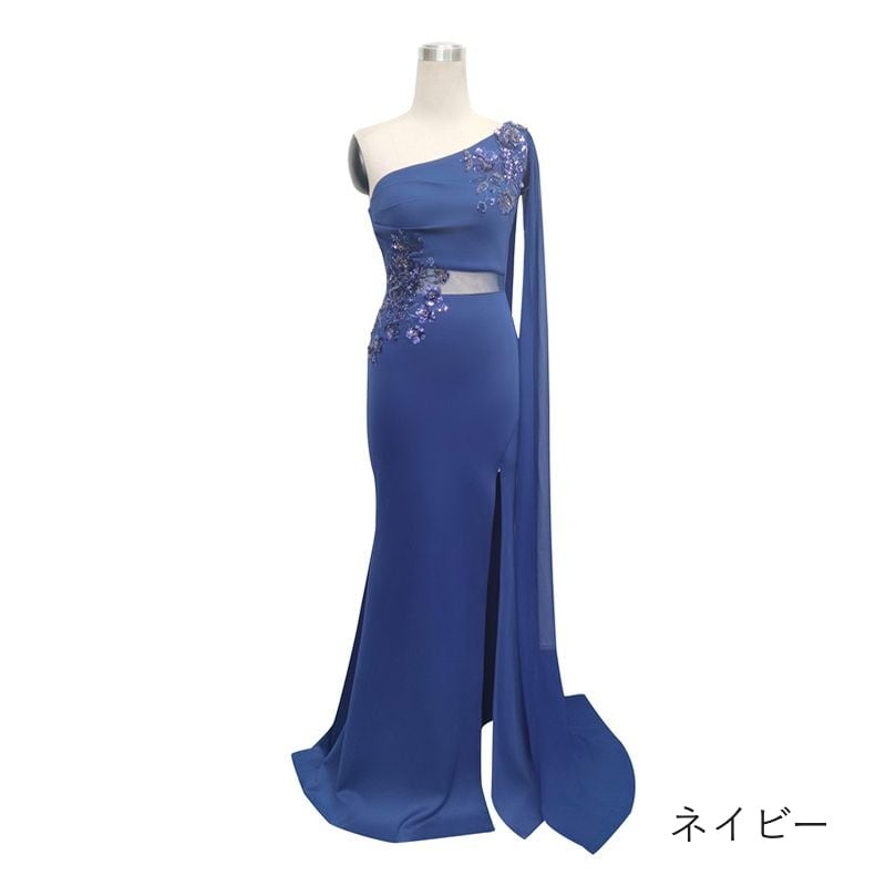 ワンショルダーシアーケープマーメイドドレス 8color D1686
