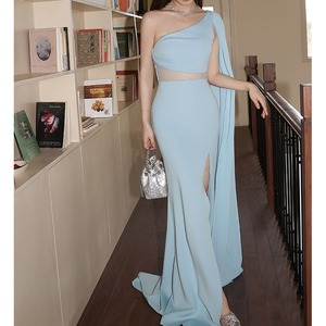 ワンショルダーシアーケープマーメイドドレス 8color D1687