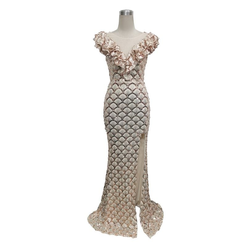 洗練されたデザインと豪華なスパンコールが魅力的なのロングドレスです。