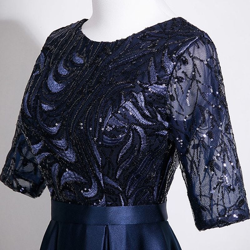 華やかなシーンに上品に映えるネイビーカラーのロングドレスです。