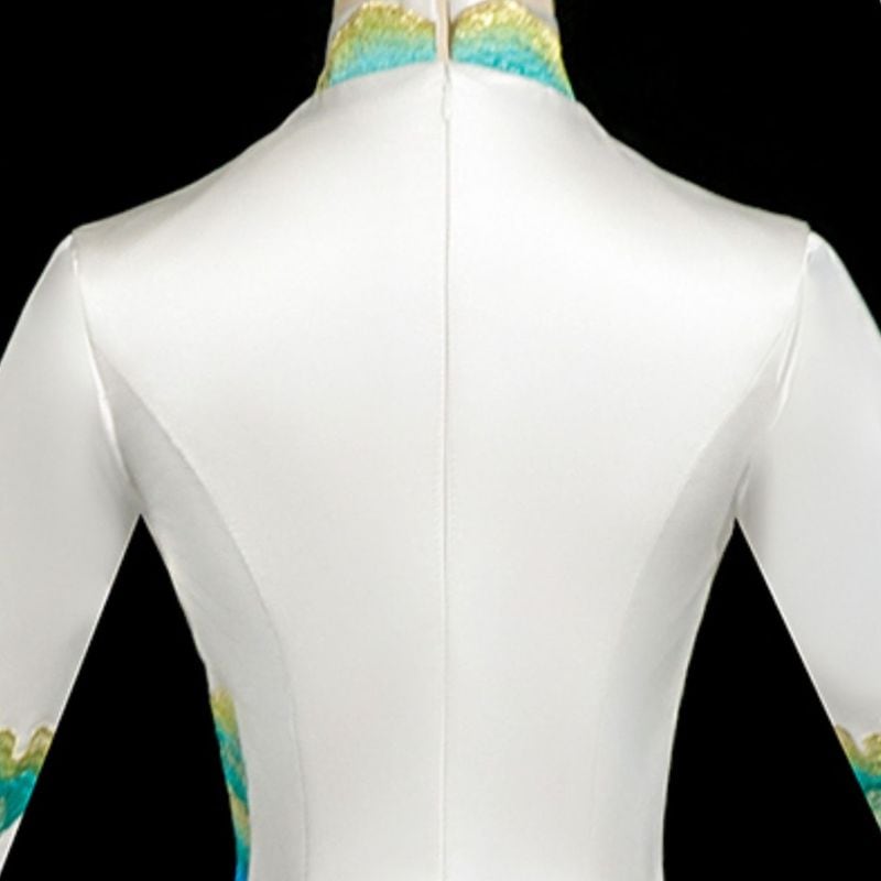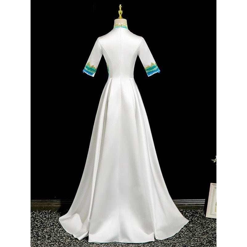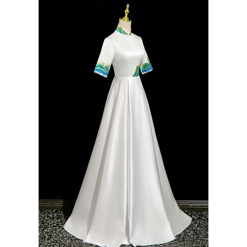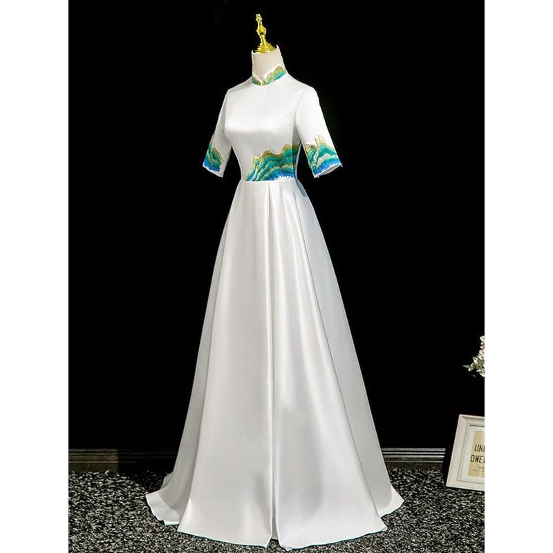 上品なチャイナネックが個性を魅せるフレアロングドレスです。