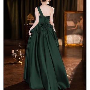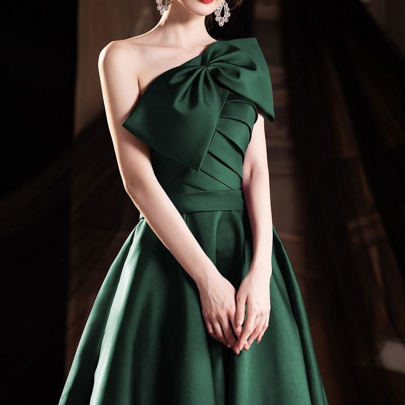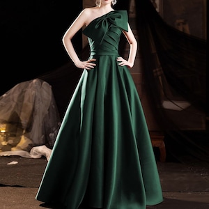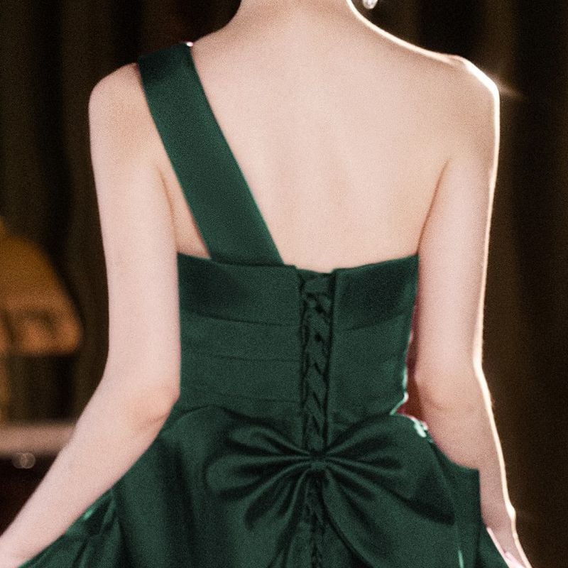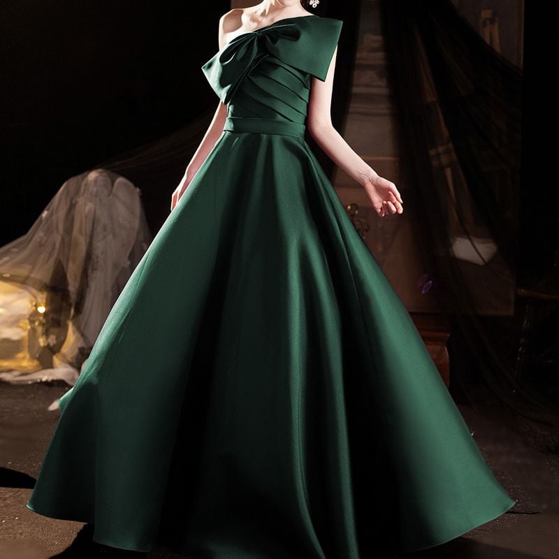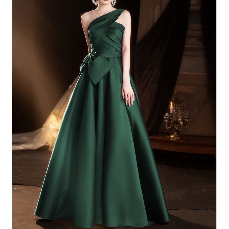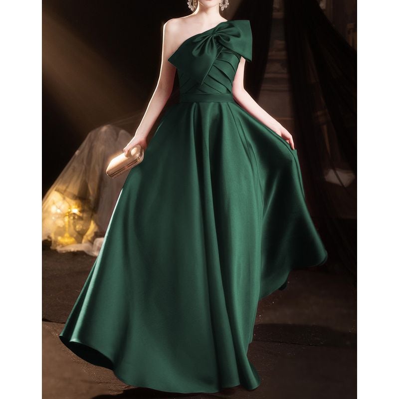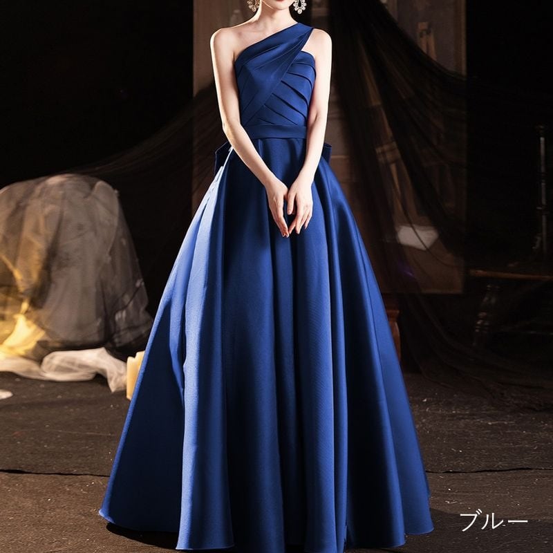ワンショルダーデザインが目を引く、エレガントな印象のロングドレス。