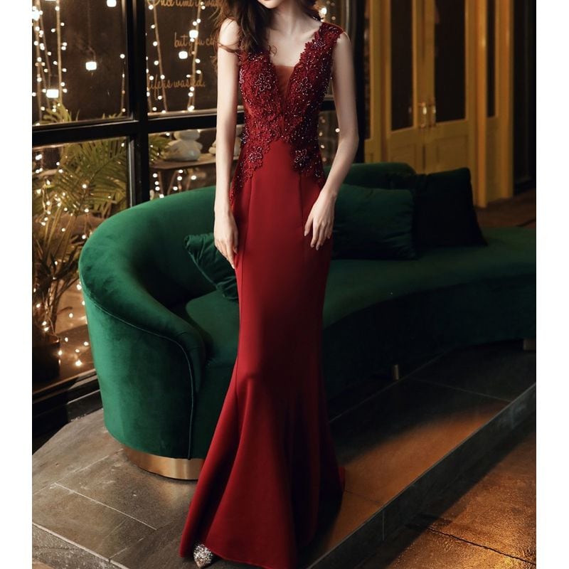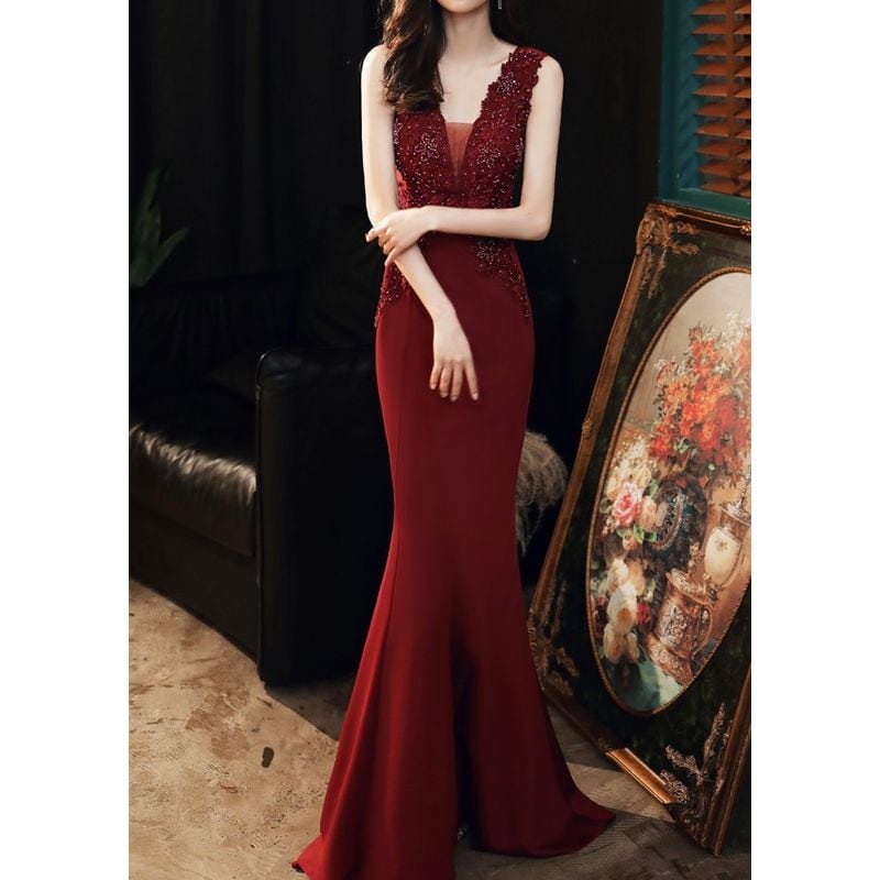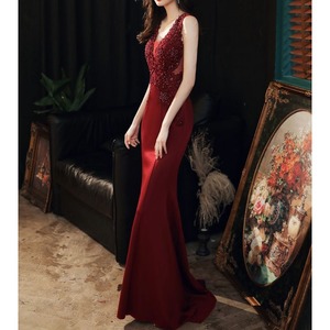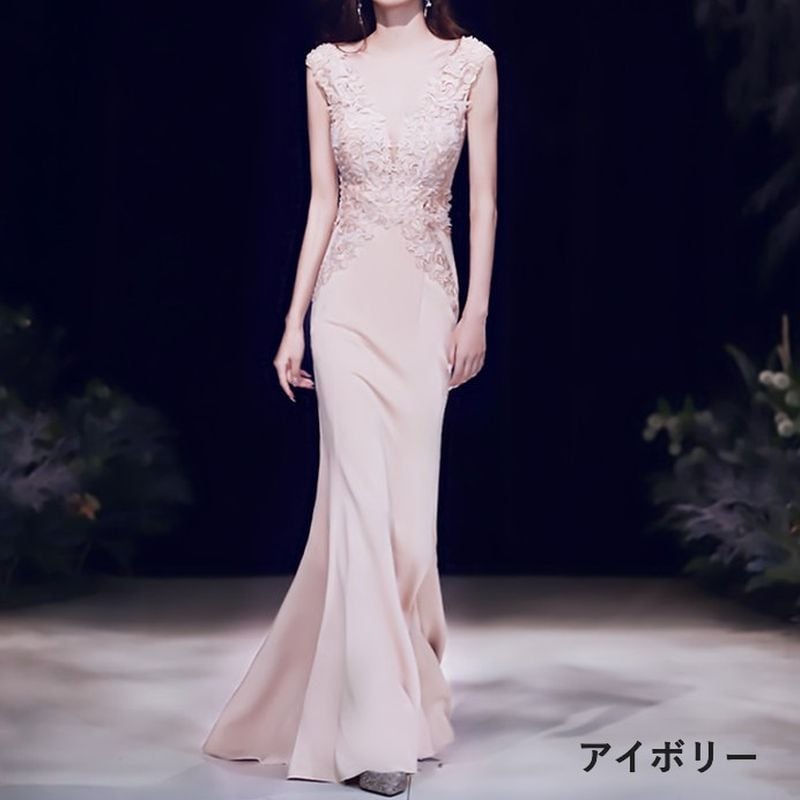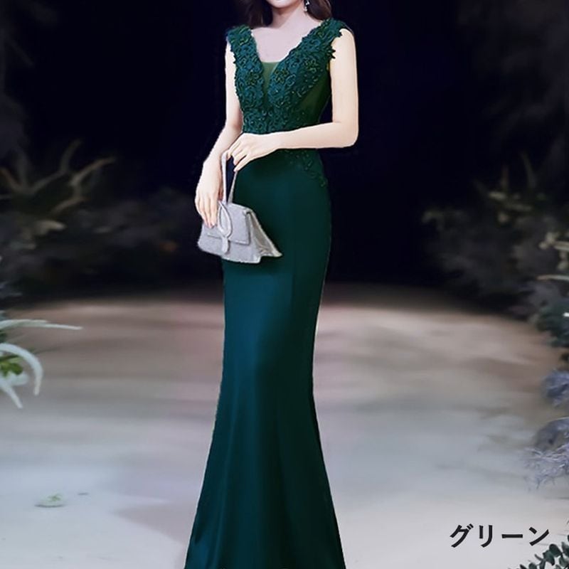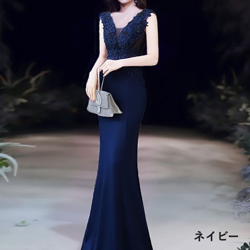 刺繍デザインノースリーブマーメイドドレス 6color D1739