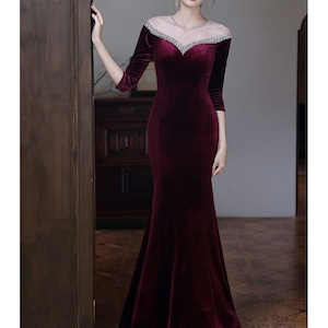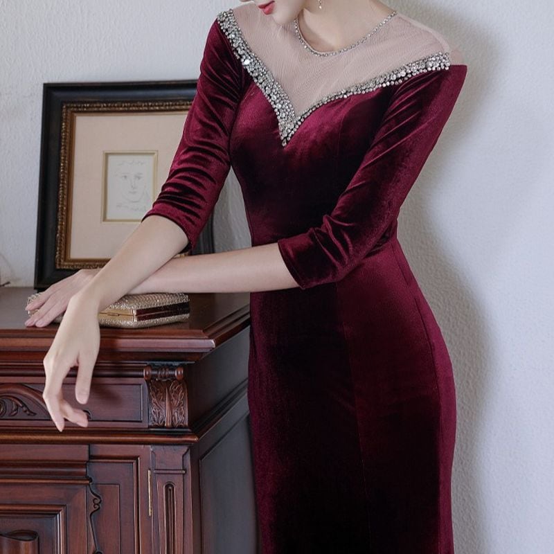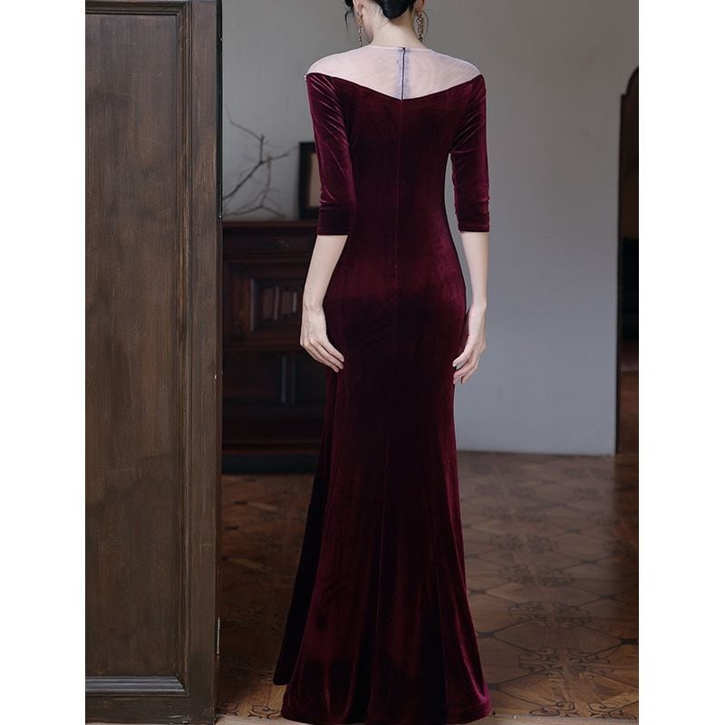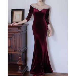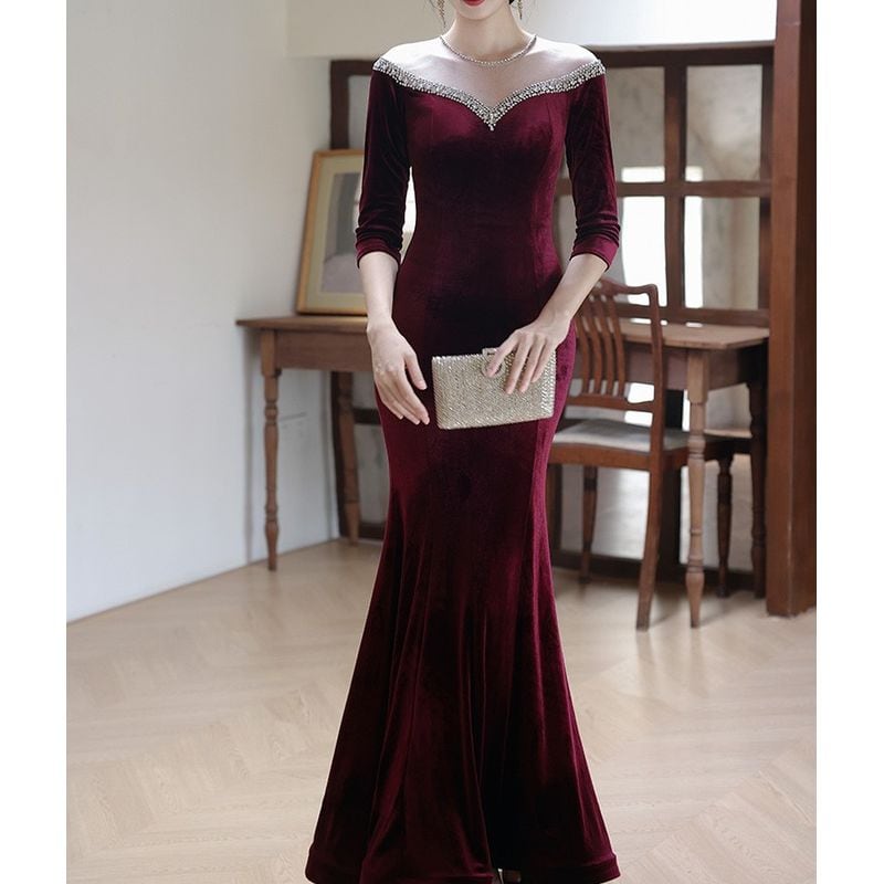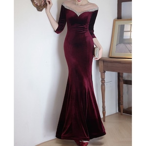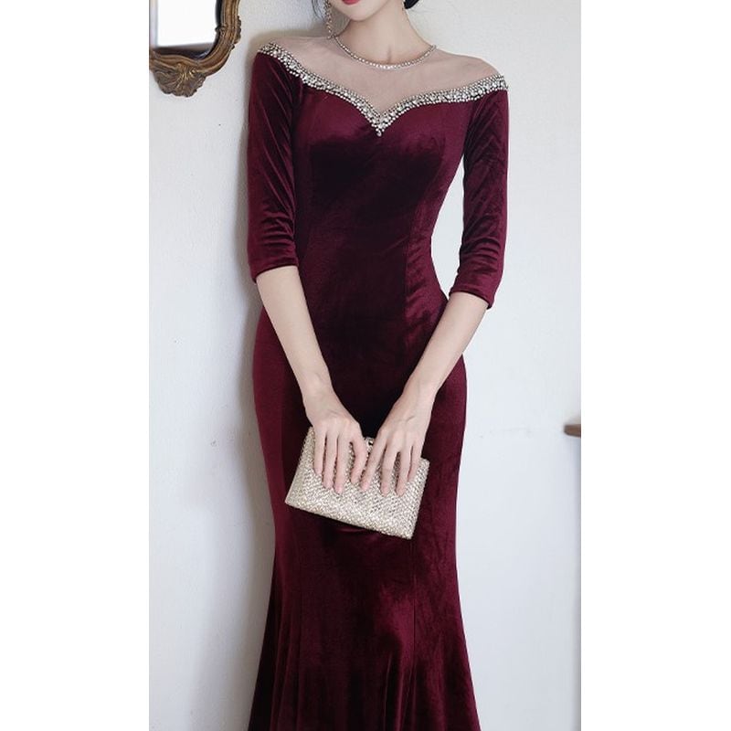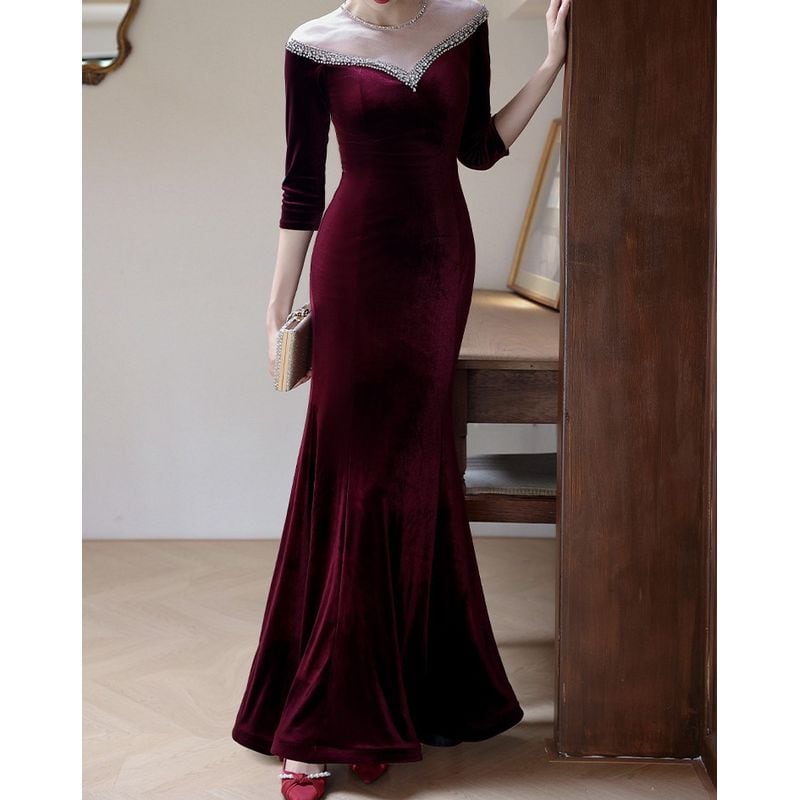 特別な夜にふさわしい、エレガントなマーメイドラインドレスです。