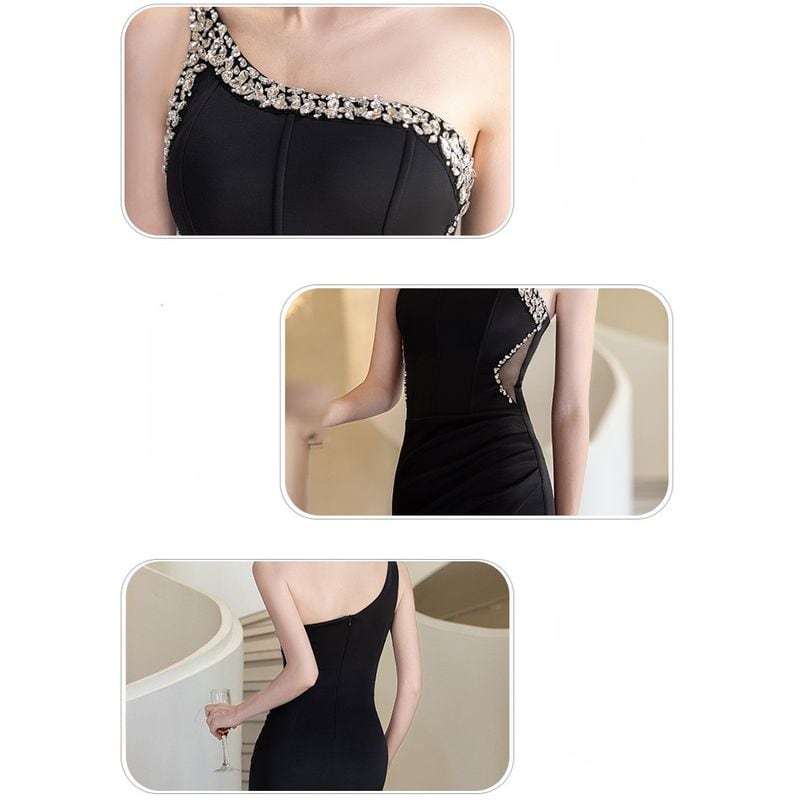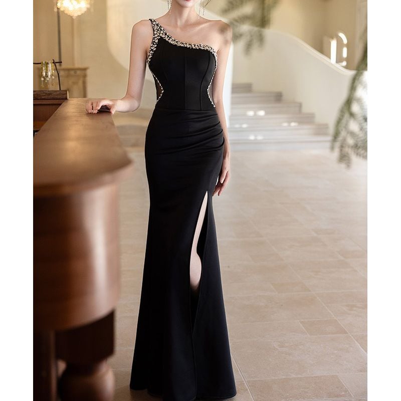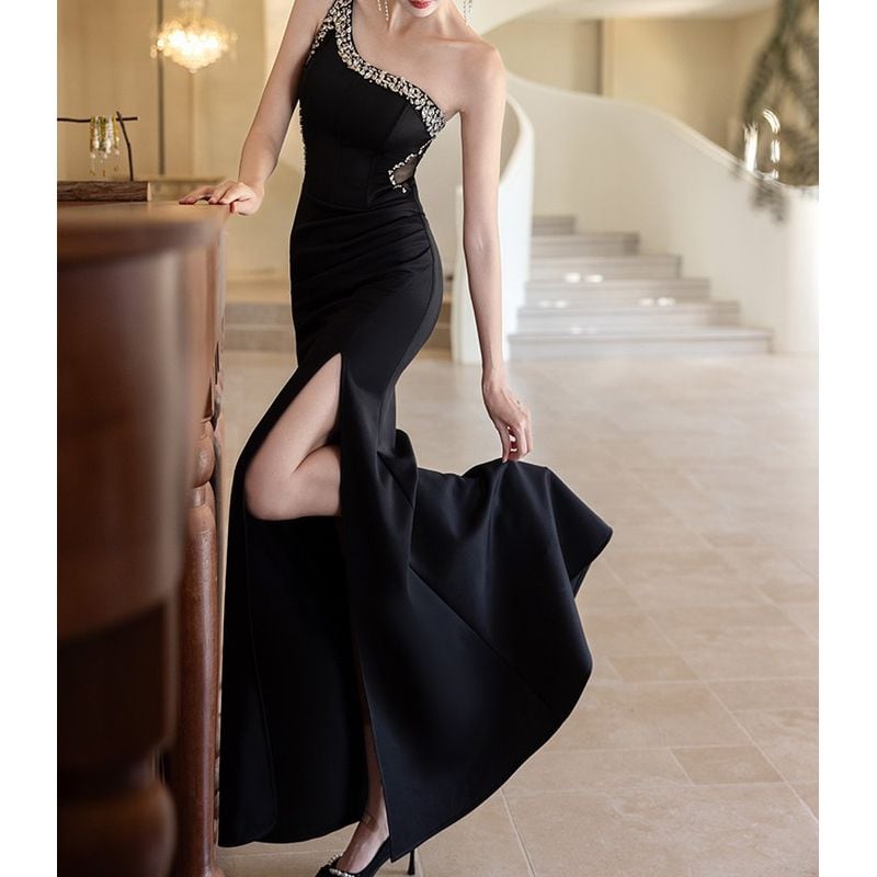 ビジューワンショルダーマーメイドドレス D1751