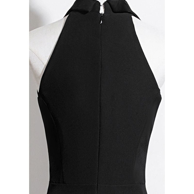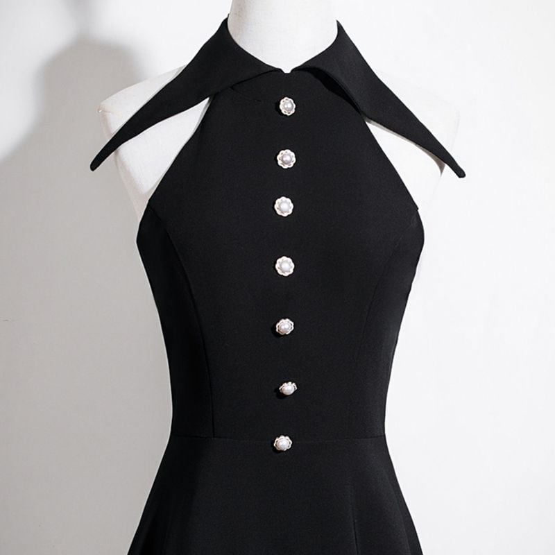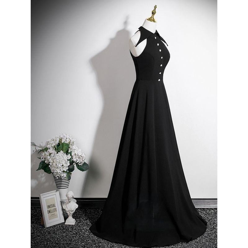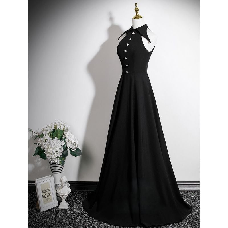 シャープでモダンな襟デザインがポイントのロングドレスです。