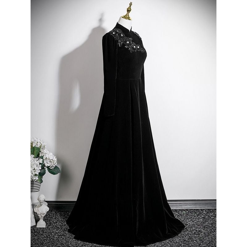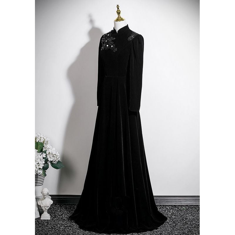 チャイナカラーで個性をプラスした長袖デザインのロングドレスです。
