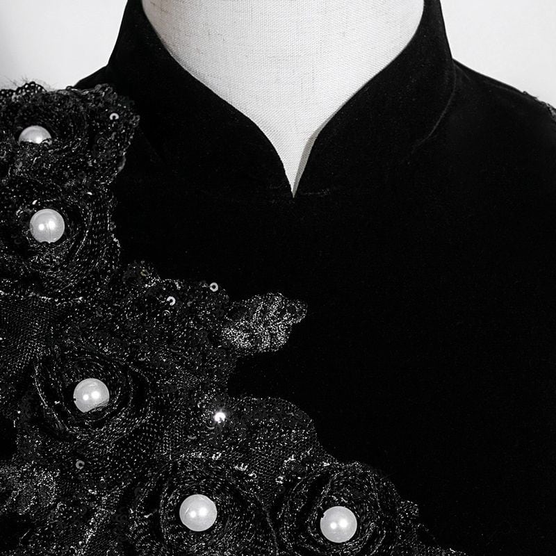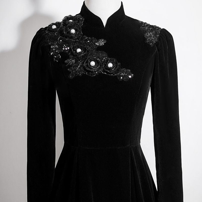 ベルベッド調の生地でクラシカルに仕上げた上品な一着です。