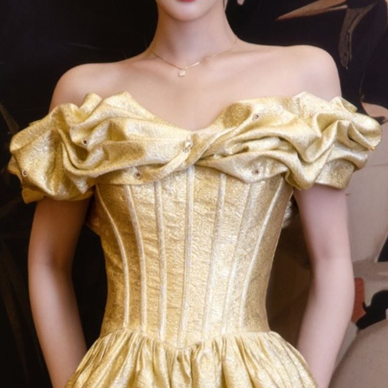 メリハリを付けた女性らしいシルエットで、イベントや特別な日に、見る人を魅了する1着です。