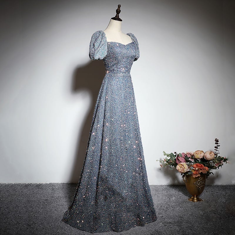 数量限定【3営業日以内に国内発送】<Lサイズ B90 W73>ラメデザイン Aラインパフスリーブドレス D1185