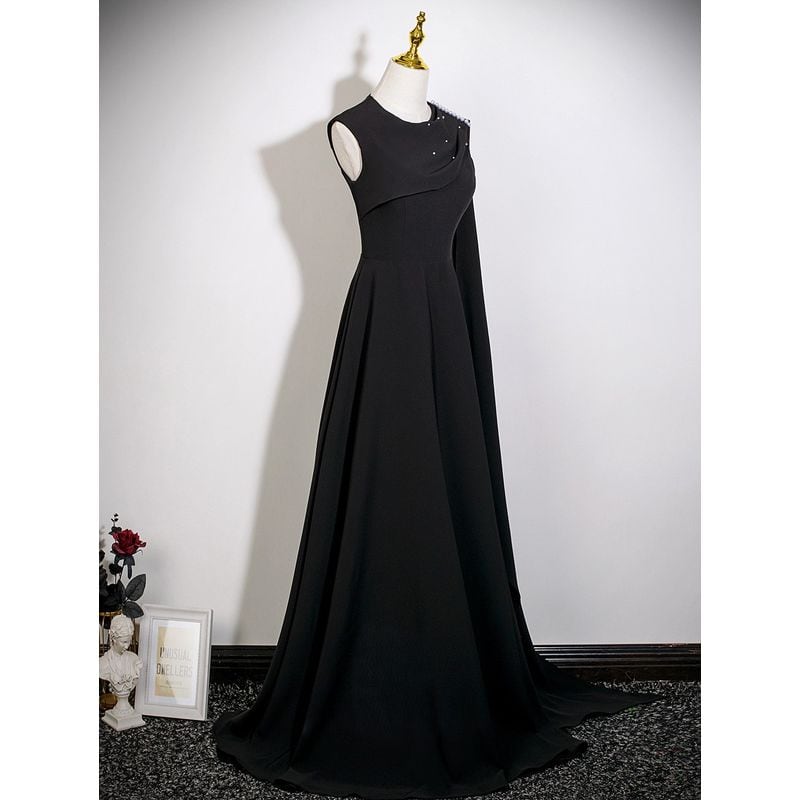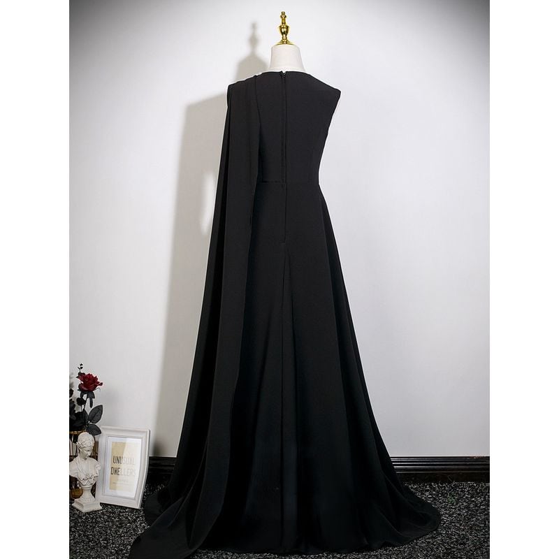 長いストールが魅力的に流れ、エレガントなシルエットを作るロングドレスです。