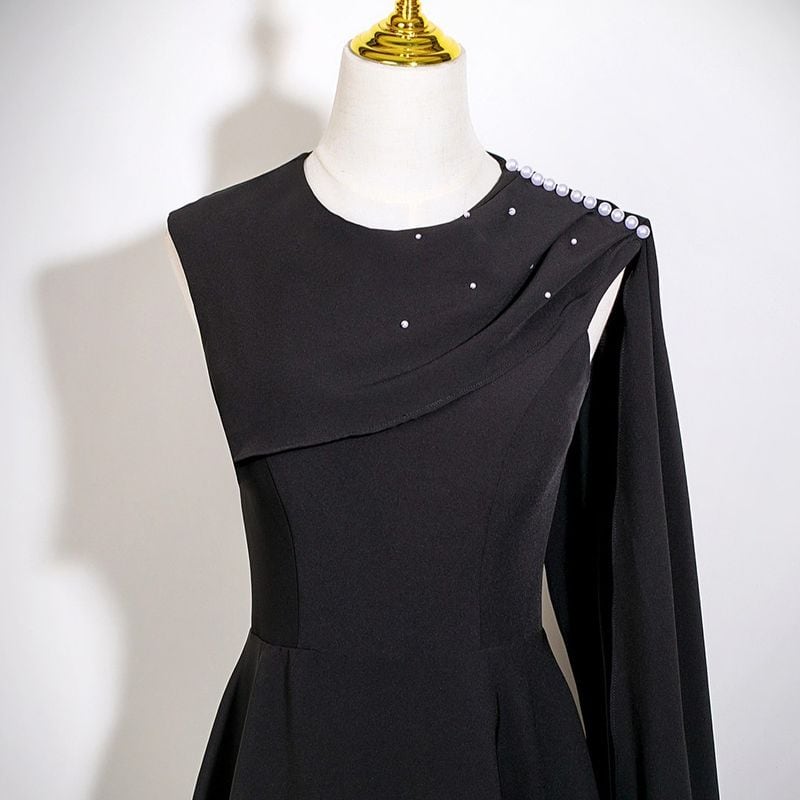 アシンメトリーなデザインが個性を際立たせ、周囲の視線を惹きつける一着です。