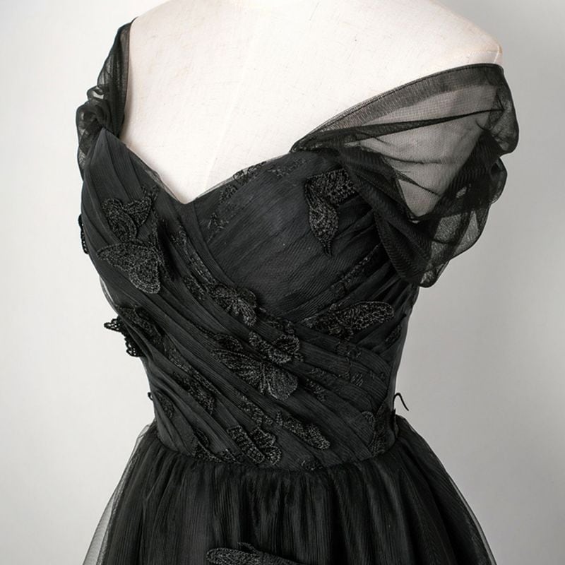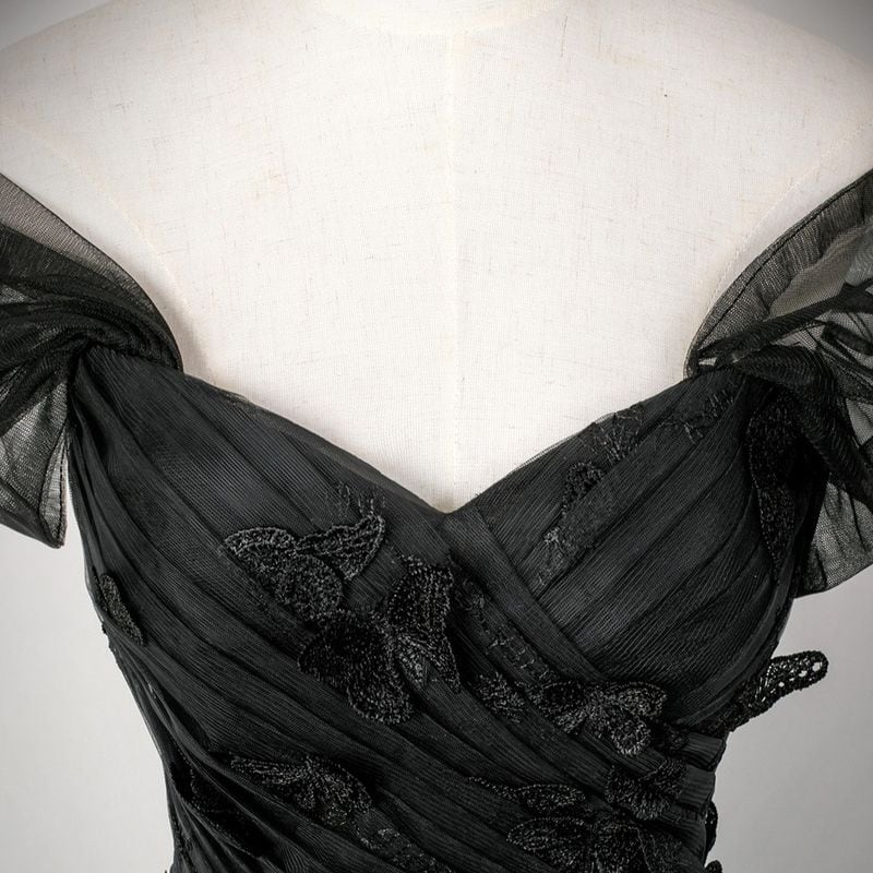 さりげなく施された蝶の装飾が、華やかさと遊び心をプラスしたエレガントな一着です。