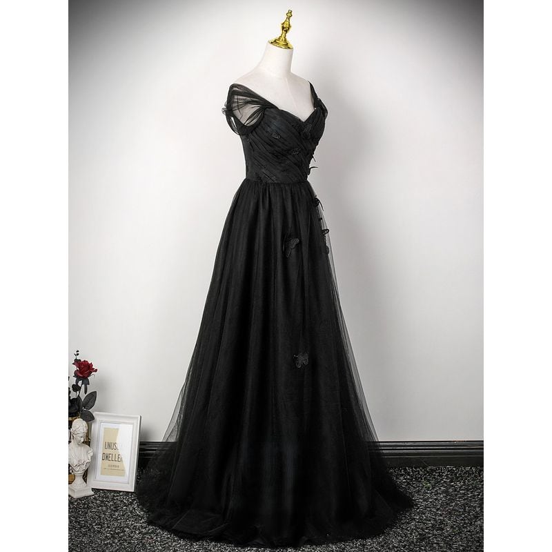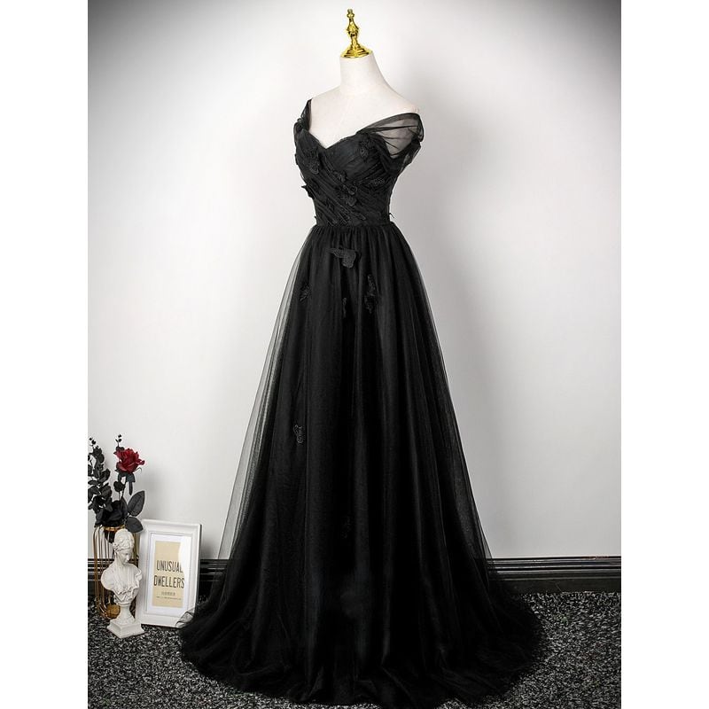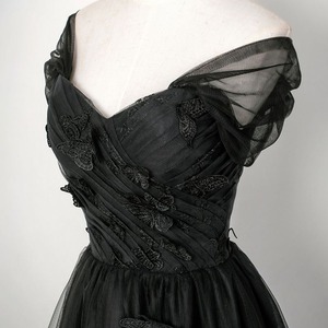柔らかなチュール素材がふんわりと広がり、優雅なシルエットを演出するロングドレスです。