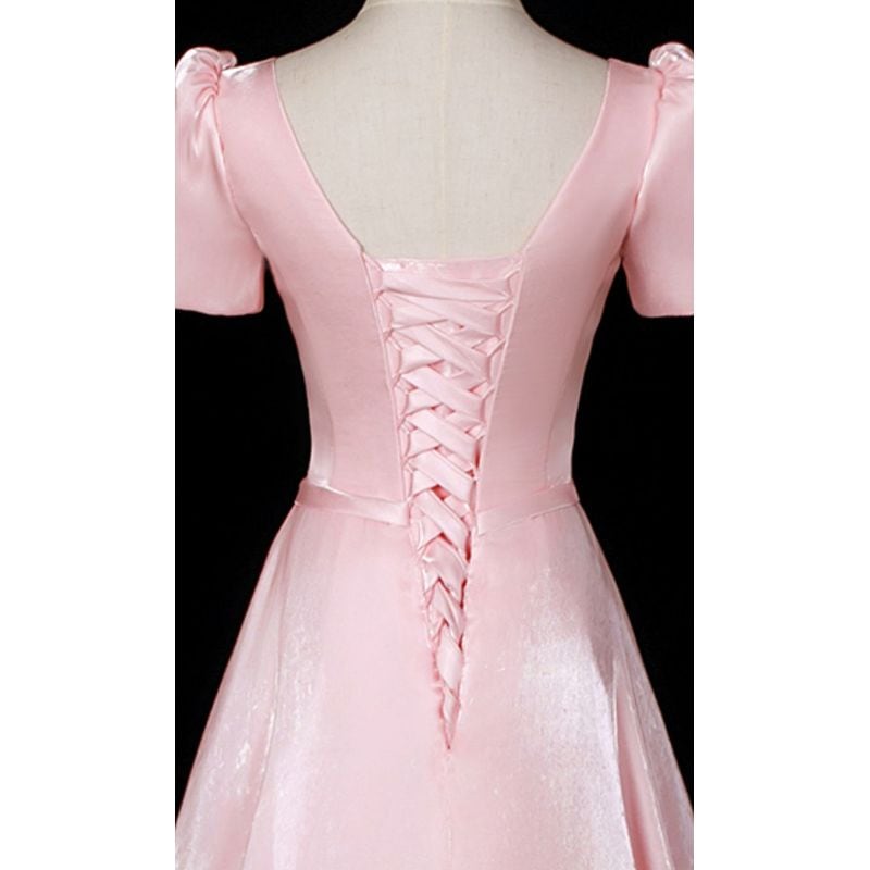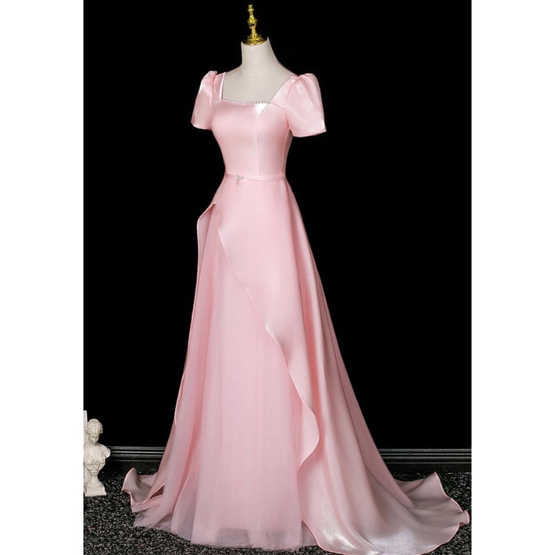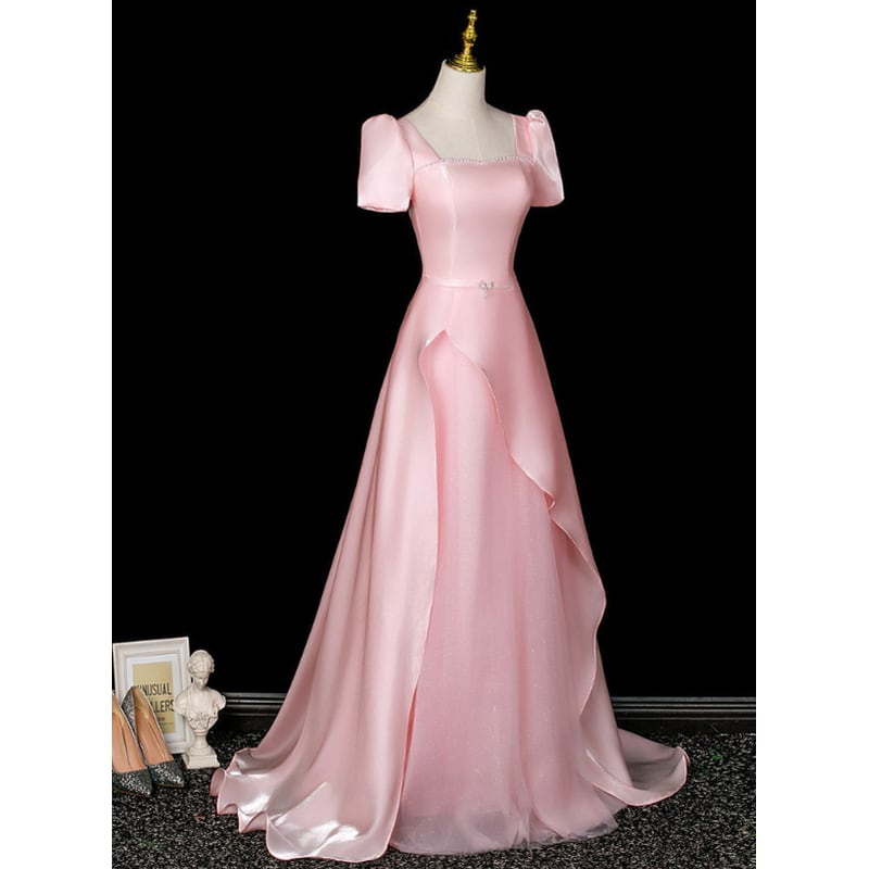 ロマンティックなピンクカラーが可愛らしいパフスリーブデザインのロングドレスです。