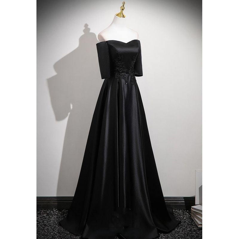 オフショルダーデザインがデコルテを美しく演出し、女性らしさを引き立てるロングドレスです。