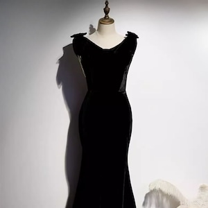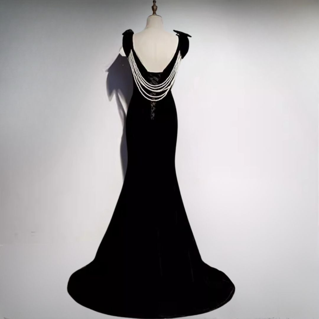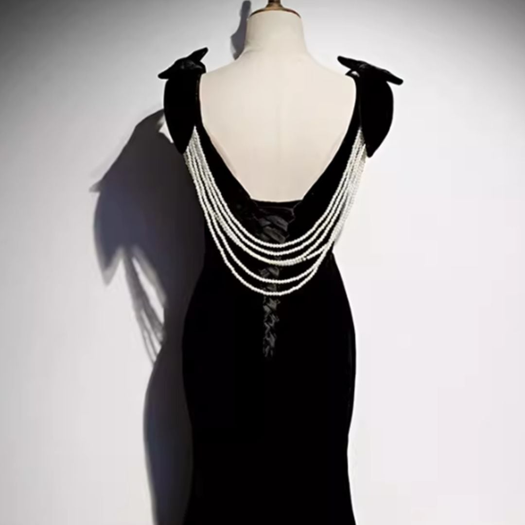 パールチェーンをデザインしたバックスタイルが魅力的なクラシカルドレスです。