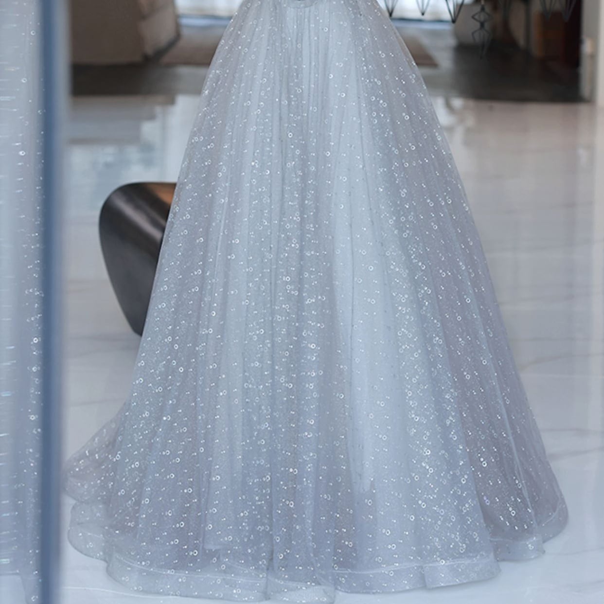 フレアレースがしなやかに揺らめくドレスです。