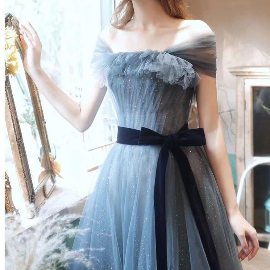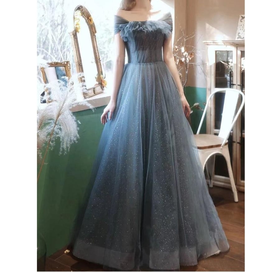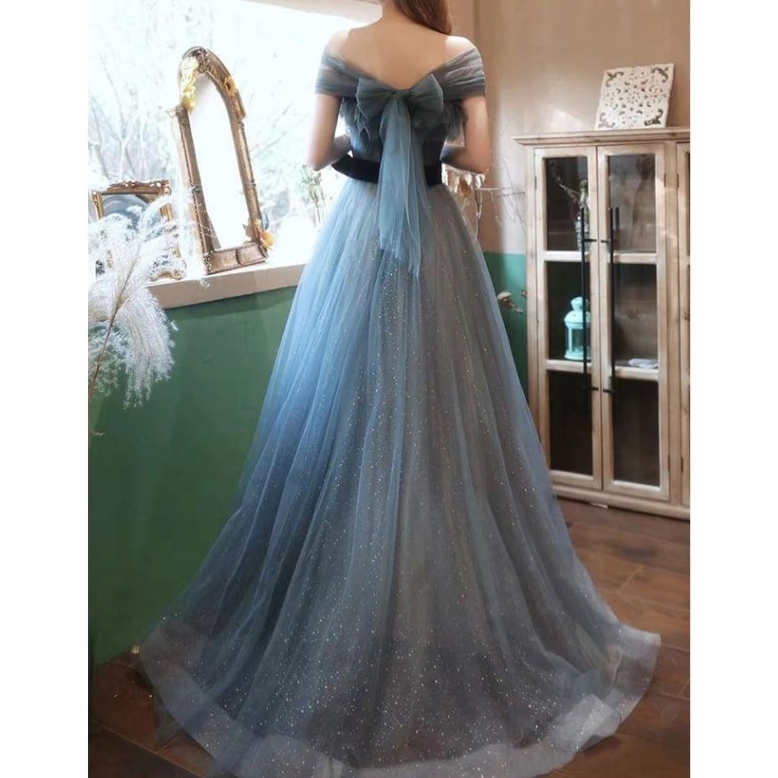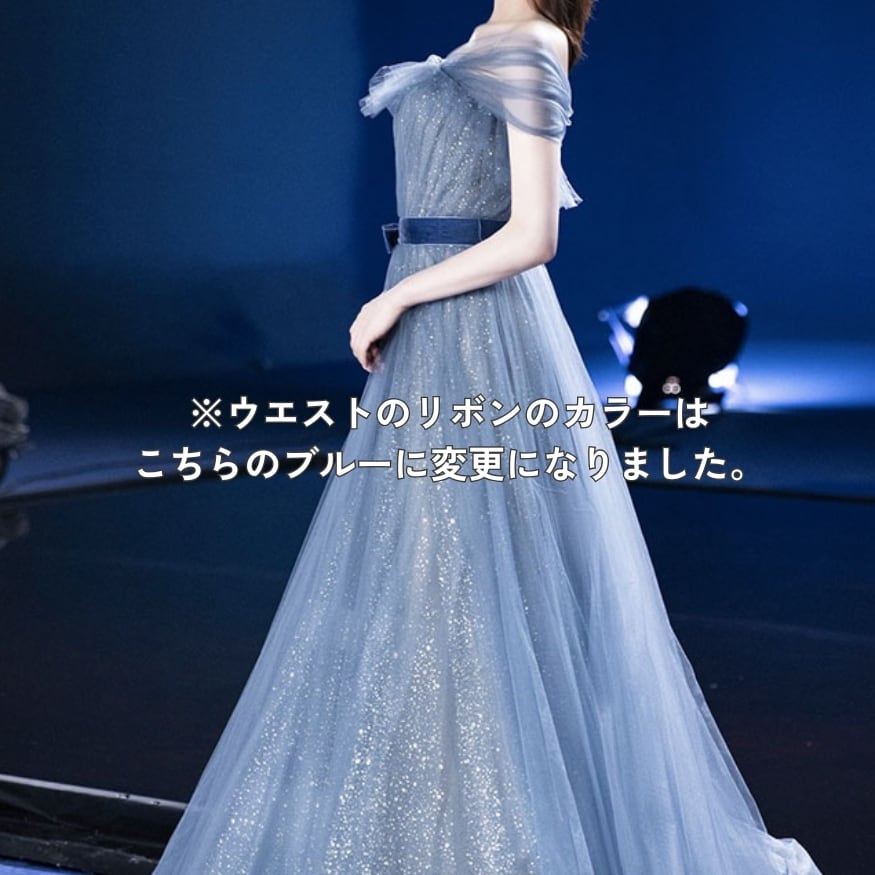オフショルダーデザインでエレガントに魅せるカラードレスです。