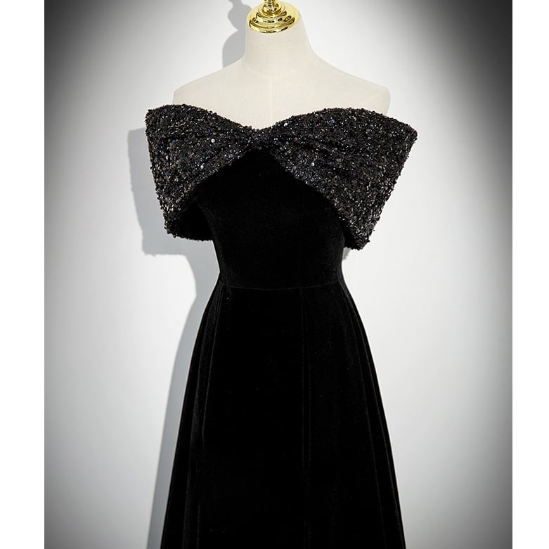 ブラックカラーが大人セクシーに仕上げてくれるオフショルダードレスです。