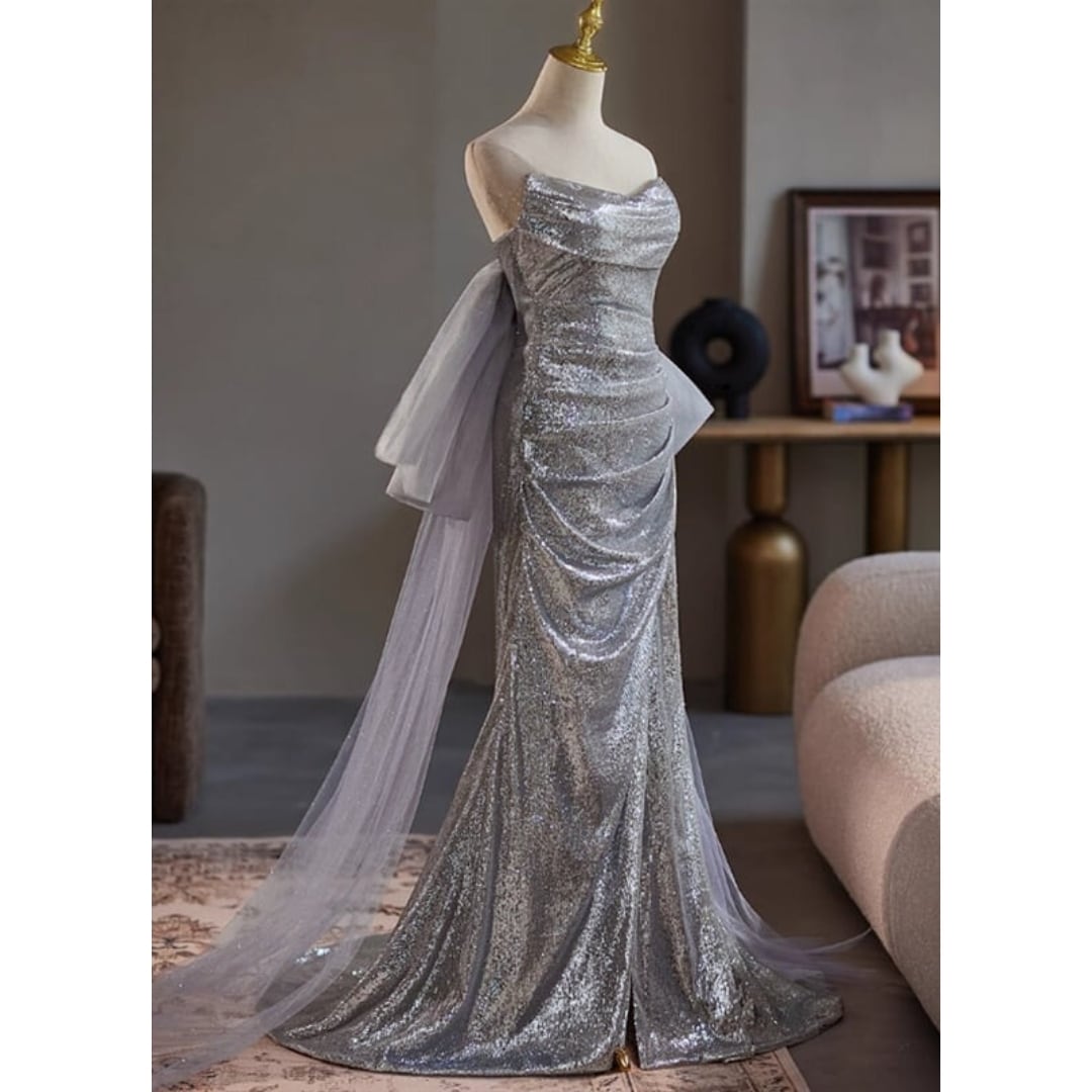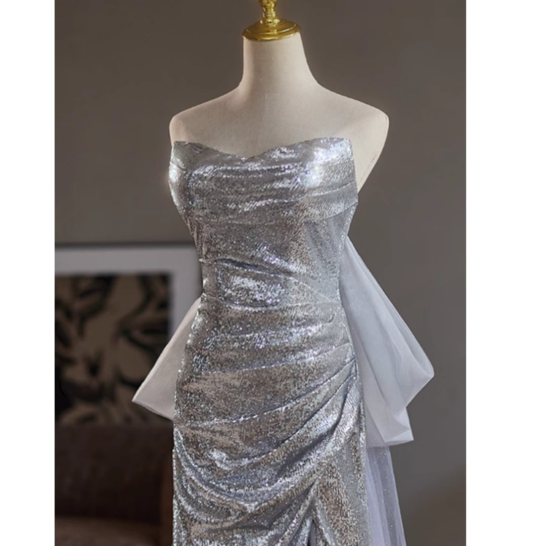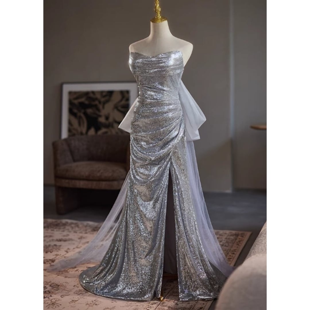 スパンコールベアトップドレス D1300