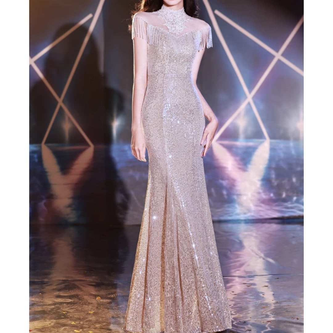 煌びやかなスパンコールのマーメイドシルエットドレスです。