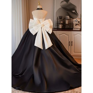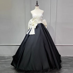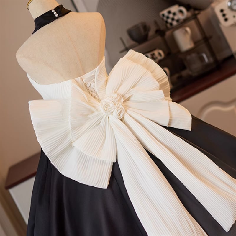 バイカラーボリュームリボンドレス D1345