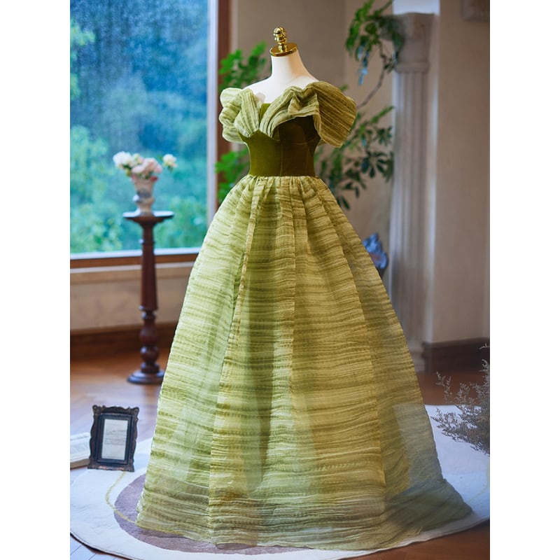個性的なボリューム感のあるオフショルダーデザインがエレガントに演出。