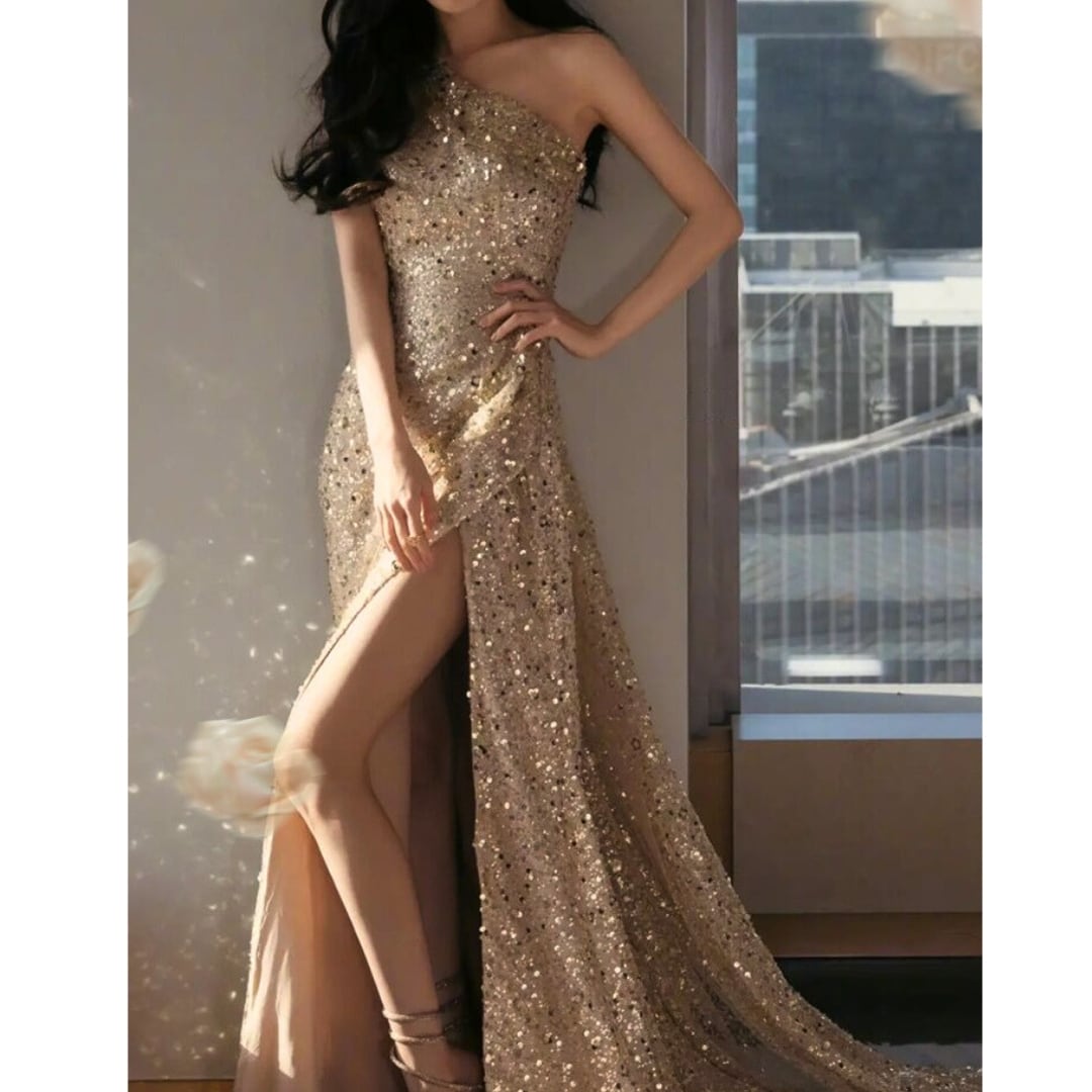 贅沢に施されたスパンコールが、華やかな輝きを放ち、特別な日の装いを格上げします。